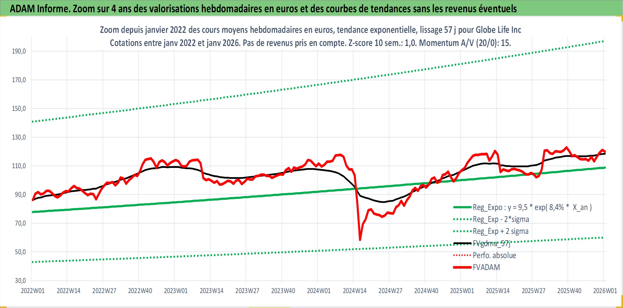 Site dédié aux investisseursPage dédiée sur site financeAnalyse des valorisations hebdomadaires de l'action Globe Life Inc. Cet actif est cote en USD. Les valorisations sont en contrevaleur EURO et couvrent les semaines 1997W01 a 2026W01. Les revenus de cet actif financier sont pris en compte depuis la semaine 1997W14. La note globale ESG de cet actif est estimee a 10.0 (apres rebasage entre 0 et 20).