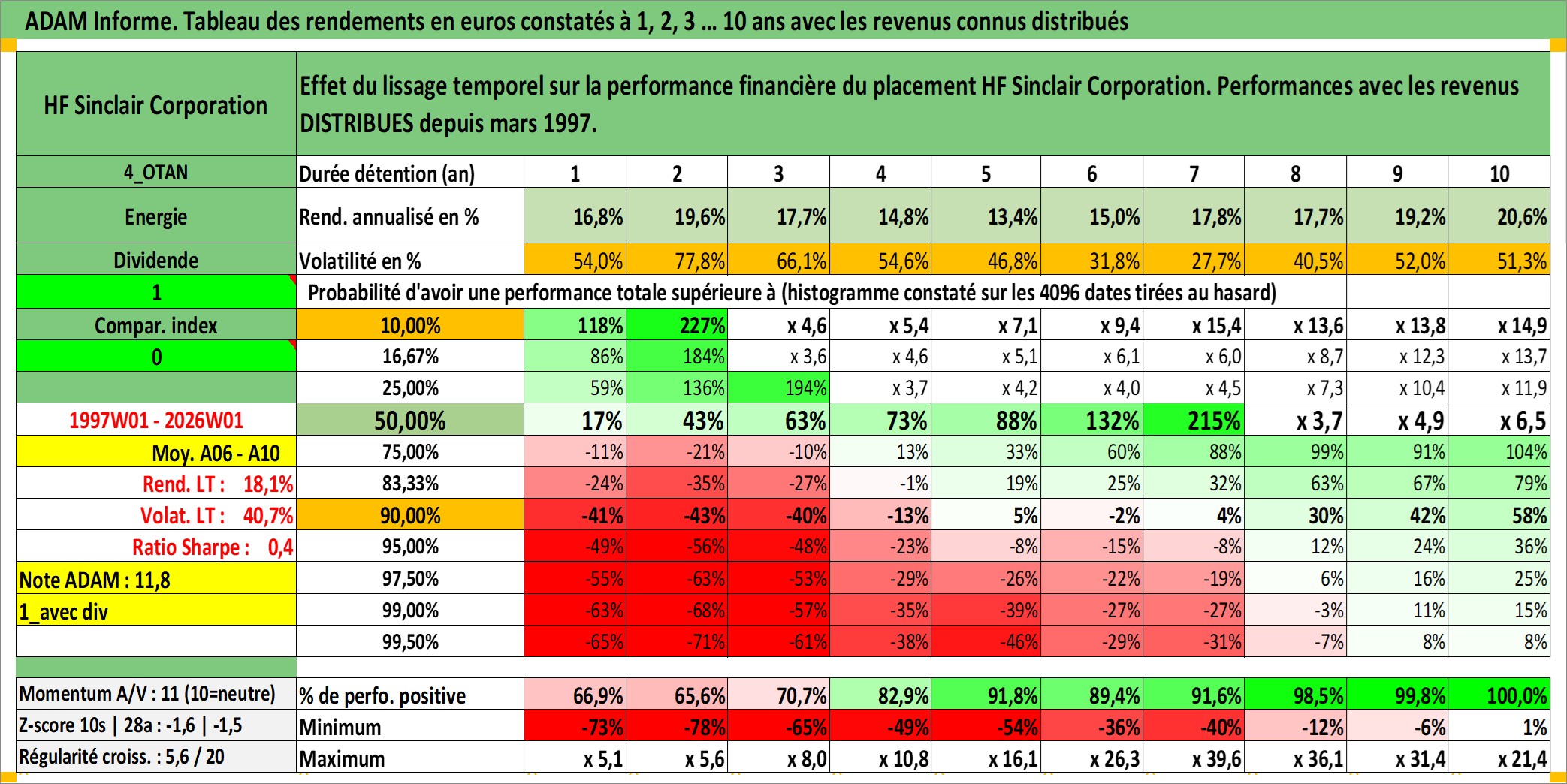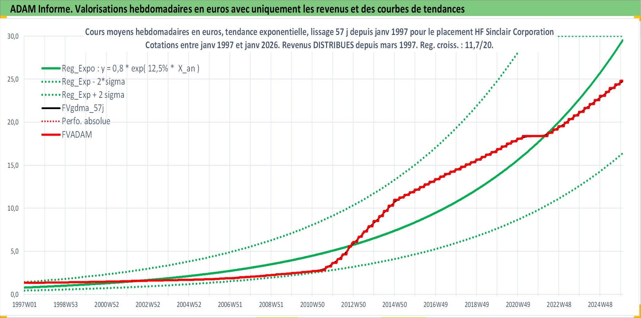 Site dédié aux investisseursPage dédiée sur site financeAnalyse des valorisations hebdomadaires de l'action HF Sinclair Corporation. Cet actif est cote en USD. Les valorisations sont en contrevaleur EURO et couvrent les semaines 1997W01 a 2026W01. Les revenus de cet actif financier sont pris en compte depuis la semaine 1997W12. La note ESG de cet actif n'est pas connue.