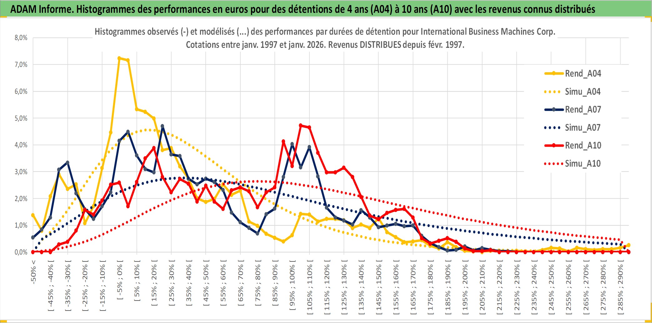 Site dédié aux investisseursPage dédiée sur site financeAnalyse des valorisations hebdomadaires de l'action International Business Machines Corp. Cet actif est cote en USD. Les valorisations sont en contrevaleur EURO et couvrent les semaines 1997W01 a 2026W01. Les revenus de cet actif financier sont pris en compte depuis la semaine 1997W06. La note globale ESG de cet actif est estimee a 13.0 (apres rebasage entre 0 et 20).