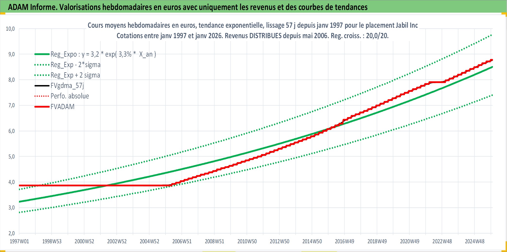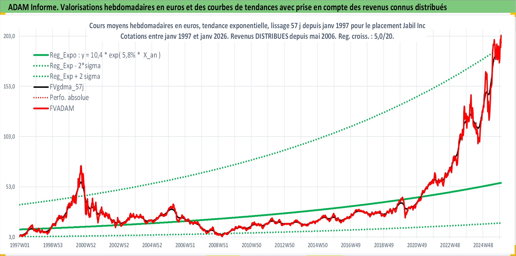 Site dédié aux investisseursPage dédiée sur site financeAnalyse des valorisations hebdomadaires de l'action Jabil Inc. Cet actif est cote en USD. Les valorisations sont en contrevaleur EURO et couvrent les semaines 1997W01 a 2026W01. Les revenus de cet actif financier sont pris en compte depuis la semaine 2006W19. La note ESG de cet actif n'est pas connue.