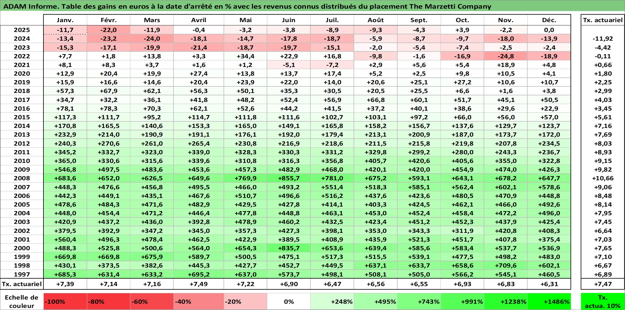 Dernière perfo 10 ans en %