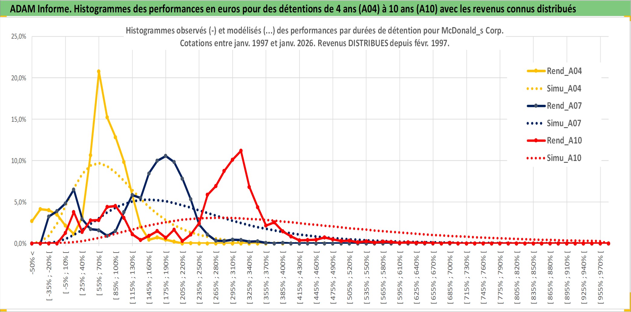 Site dédié aux investisseursPage dédiée sur site financeAnalyse des valorisations hebdomadaires de l'action McDonald_s Corp. Cet actif est cote en USD. Les valorisations sont en contrevaleur EURO et couvrent les semaines 1997W01 a 2026W01. Les revenus de cet actif financier sont pris en compte depuis la semaine 1997W09. La note globale ESG de cet actif est estimee a 7.0 (apres rebasage entre 0 et 20).
