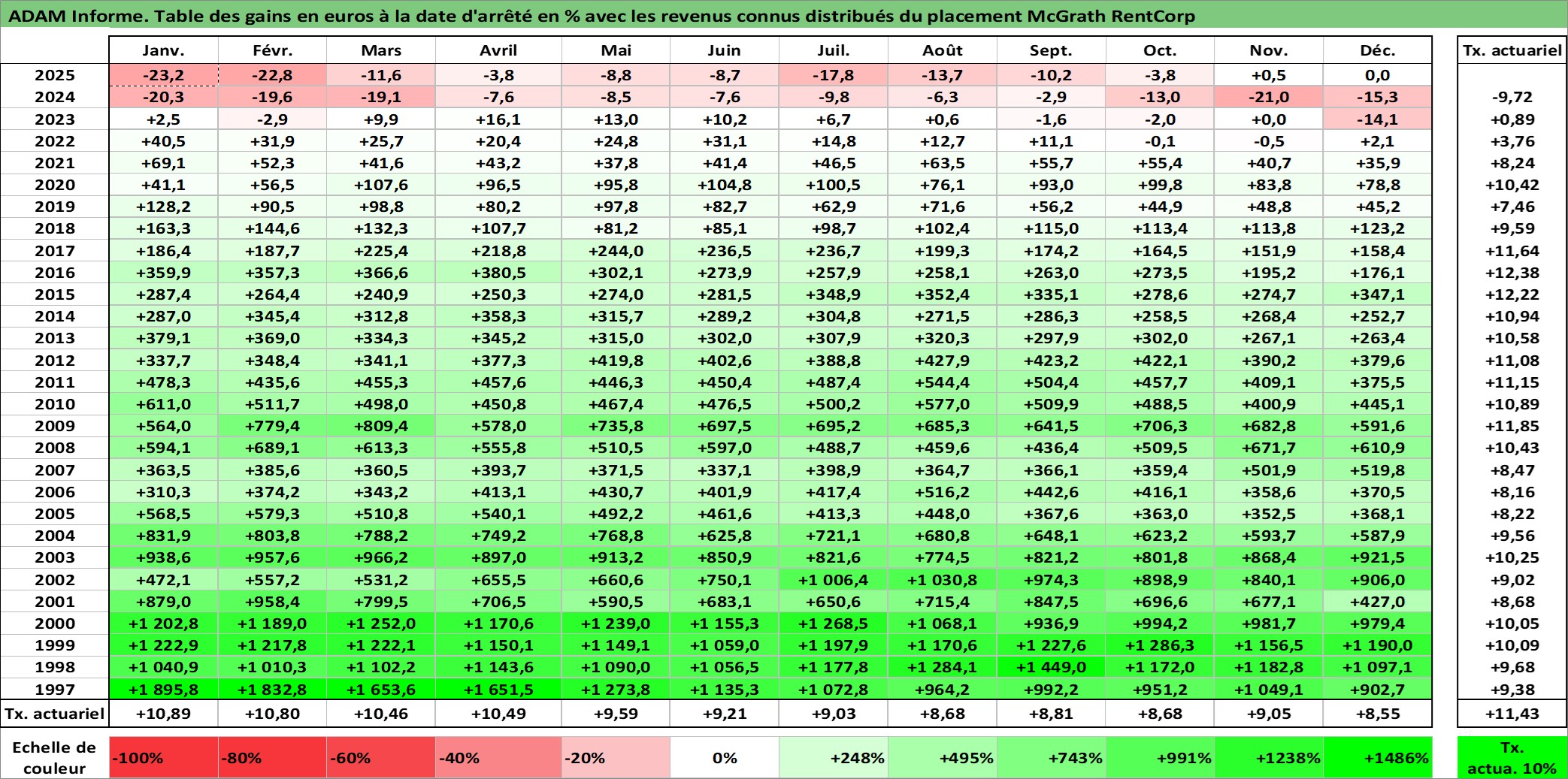 Dernière perfo 10 ans en %