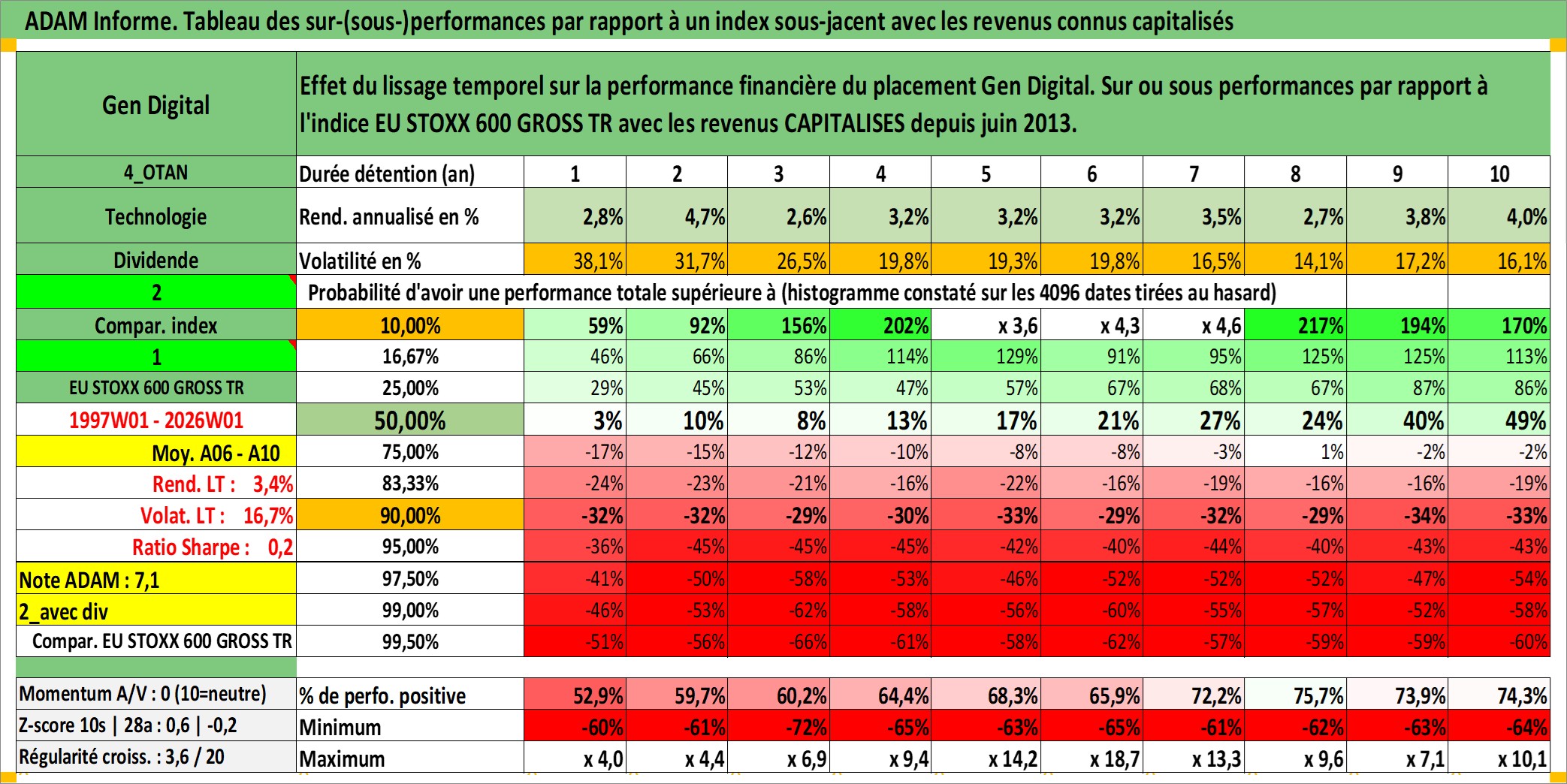 Site dédié aux investisseursPage dédiée sur site financeAnalyse des valorisations hebdomadaires de l'action Gen Digital. Cet actif est cote en USD. Les valorisations sont en contrevaleur EURO et couvrent les semaines 1997W01 a 2026W01. Les revenus de cet actif financier sont pris en compte depuis la semaine 2013W25. La note globale ESG de cet actif est estimee a 13.0 (apres rebasage entre 0 et 20).