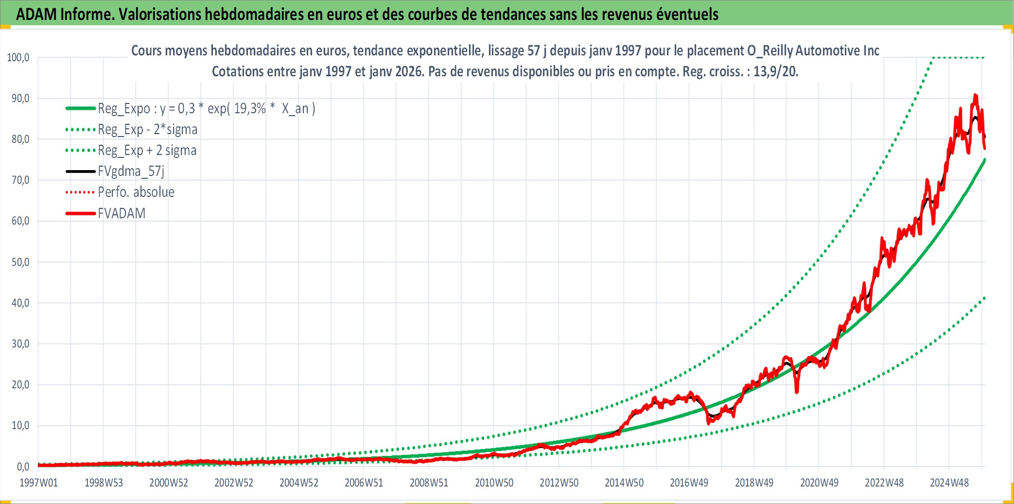 Site dédié aux investisseursPage dédiée sur site financeAnalyse des valorisations hebdomadaires de l'action O_Reilly Automotive Inc. Cet actif est cote en USD. Les valorisations sont en contrevaleur EURO et couvrent les semaines 1997W01 a 2026W01. Les revenus de cet actif financier ne sont pas connus car non existants ou non disponibles sur le site Yahoo Finance. La note globale ESG de cet actif est estimee a 15.0 (apres rebasage entre 0 et 20).