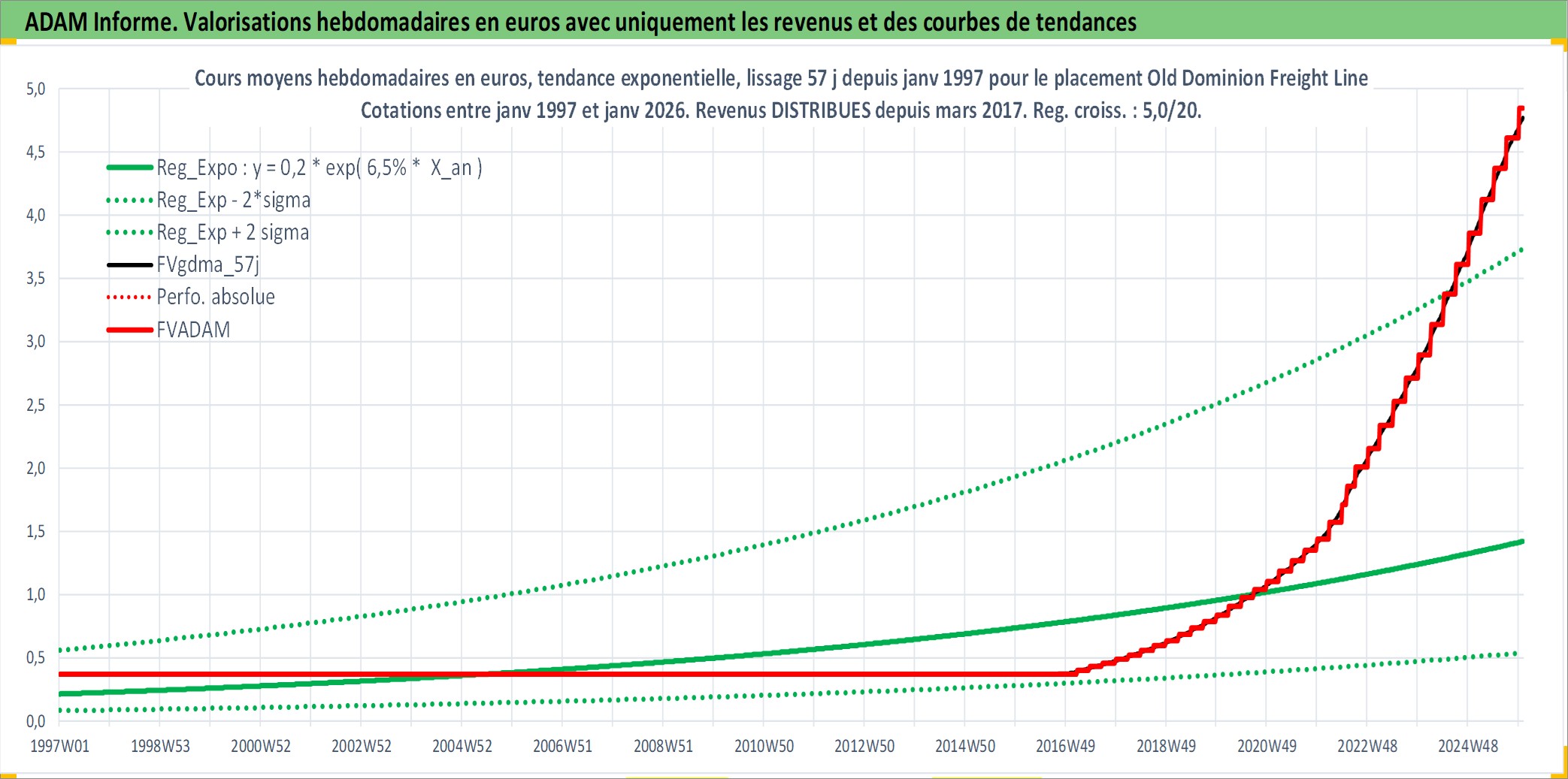 Site dédié aux investisseursPage dédiée sur site financeAnalyse des valorisations hebdomadaires de l'action Old Dominion Freight Line Inc. Cet actif est cote en USD. Les valorisations sont en contrevaleur EURO et couvrent les semaines 1997W01 a 2026W01. Les revenus de cet actif financier sont pris en compte depuis la semaine 2017W09. La note ESG de cet actif n'est pas connue.