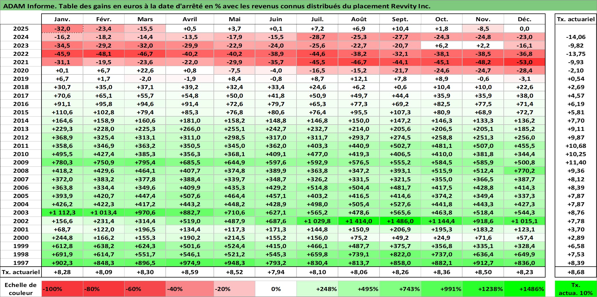 Dernière perfo 10 ans en %