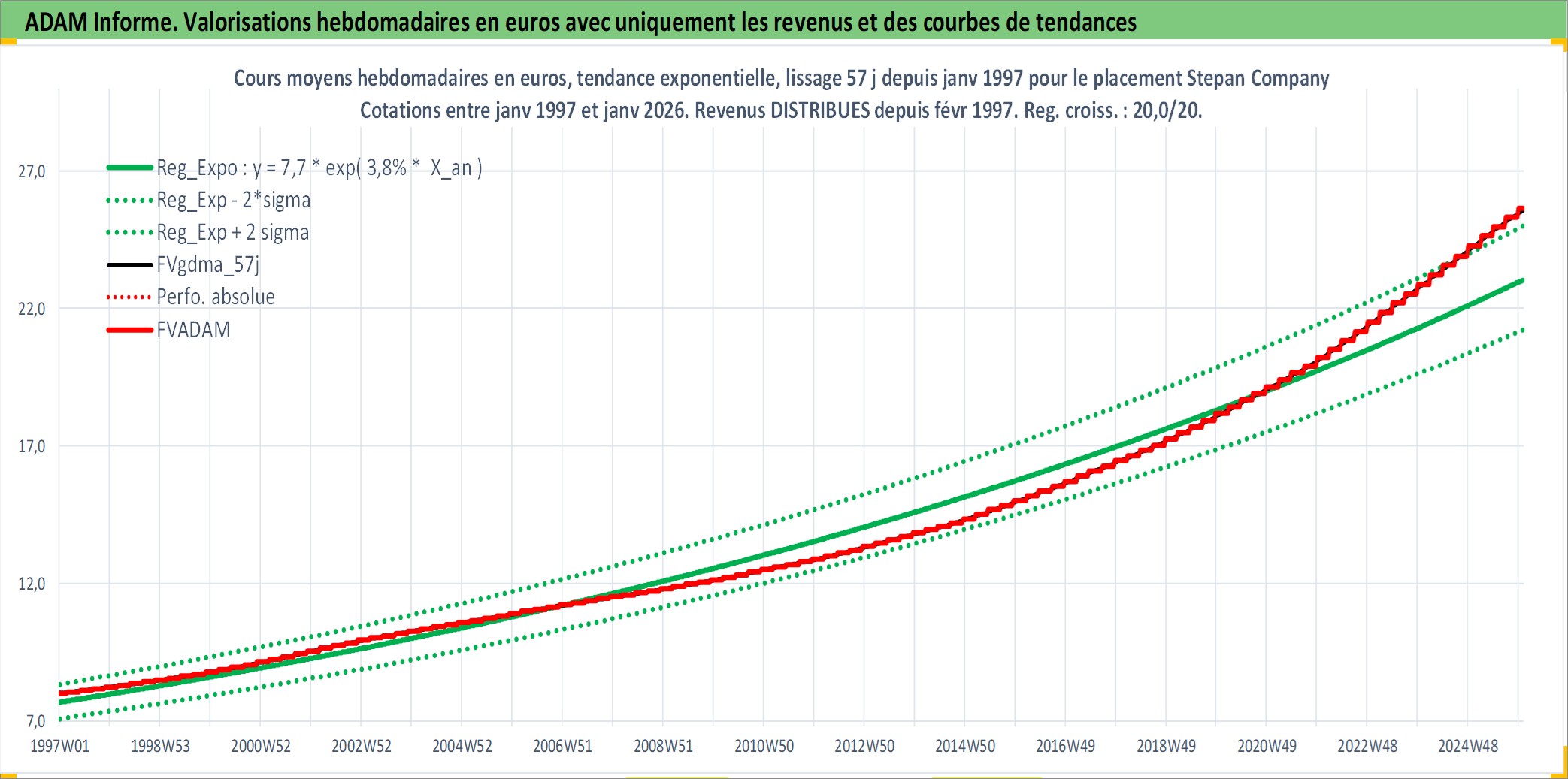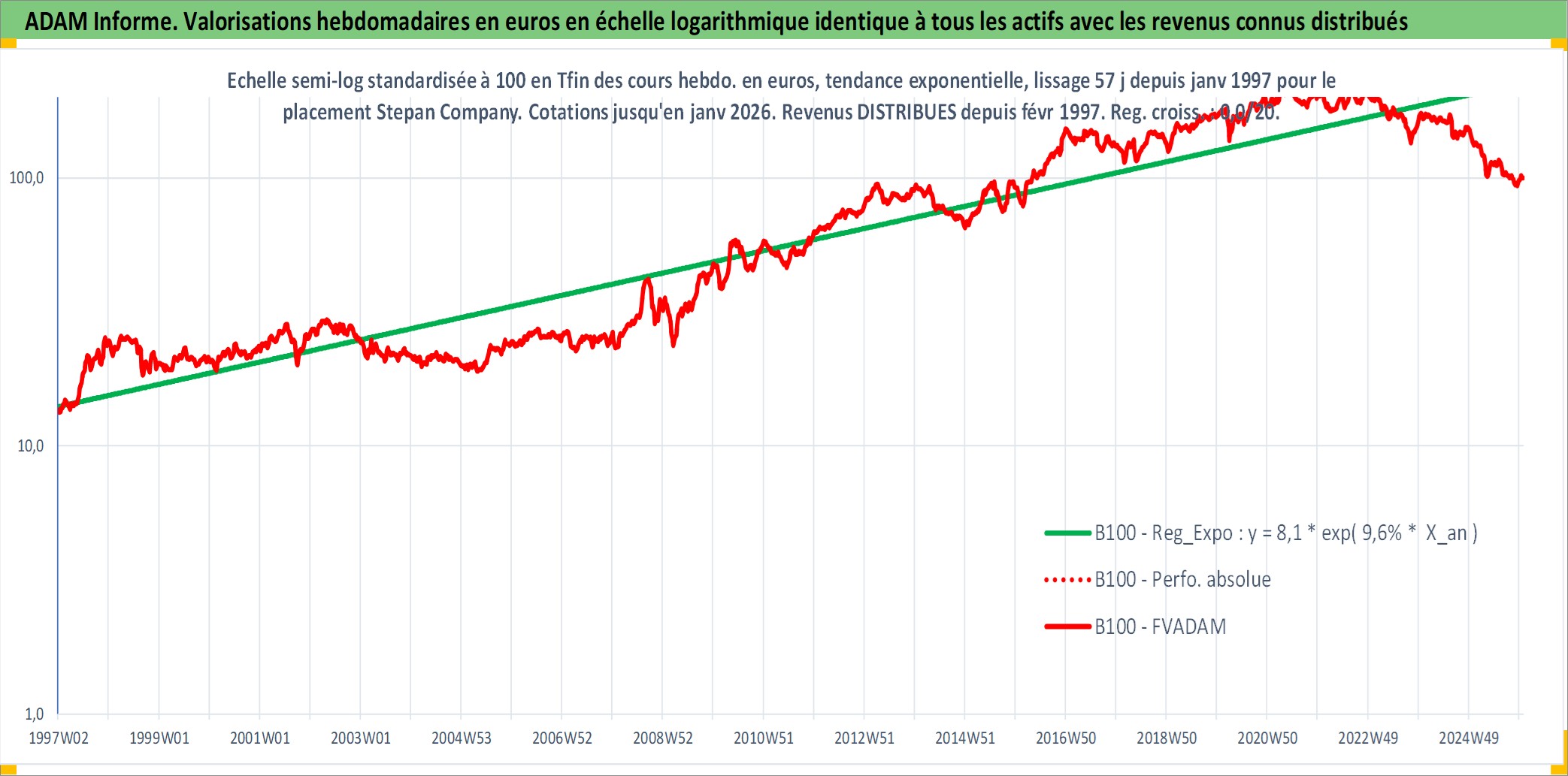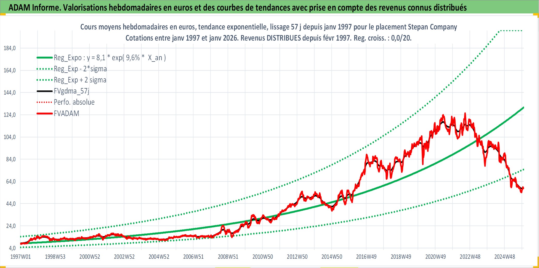 Site dédié aux investisseursPage dédiée sur site financeAnalyse des valorisations hebdomadaires de l'action Stepan Company. Cet actif est cote en USD. Les valorisations sont en contrevaleur EURO et couvrent les semaines 1997W01 a 2026W01. Les revenus de cet actif financier sont pris en compte depuis la semaine 1997W09. La note ESG de cet actif n'est pas connue.
