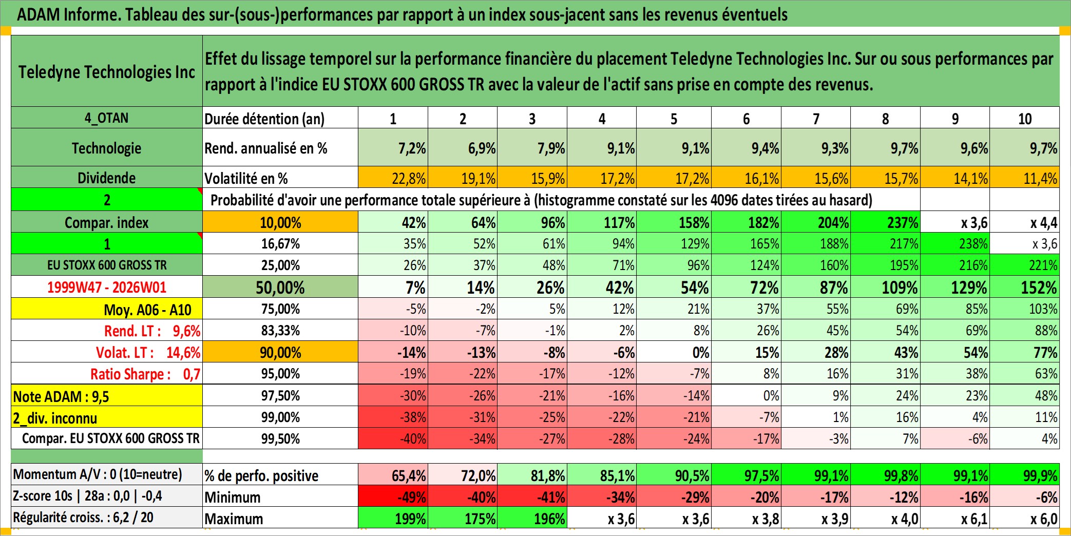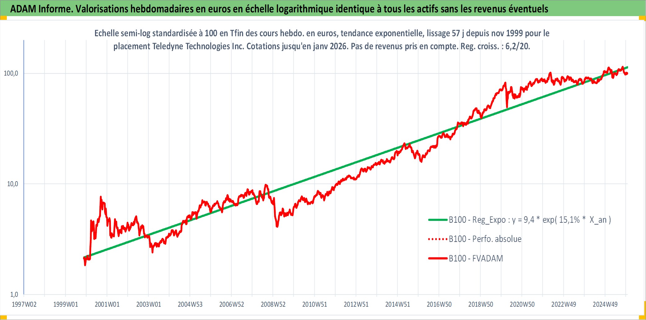 Site dédié aux investisseursPage dédiée sur site financeAnalyse des valorisations hebdomadaires de l'action Teledyne Technologies Inc. Cet actif est cote en USD. Les valorisations sont en contrevaleur EURO et couvrent les semaines 1999W47 a 2026W01. Les revenus de cet actif financier ne sont pas connus car non existants ou non disponibles sur le site Yahoo Finance. La note ESG de cet actif n'est pas connue.