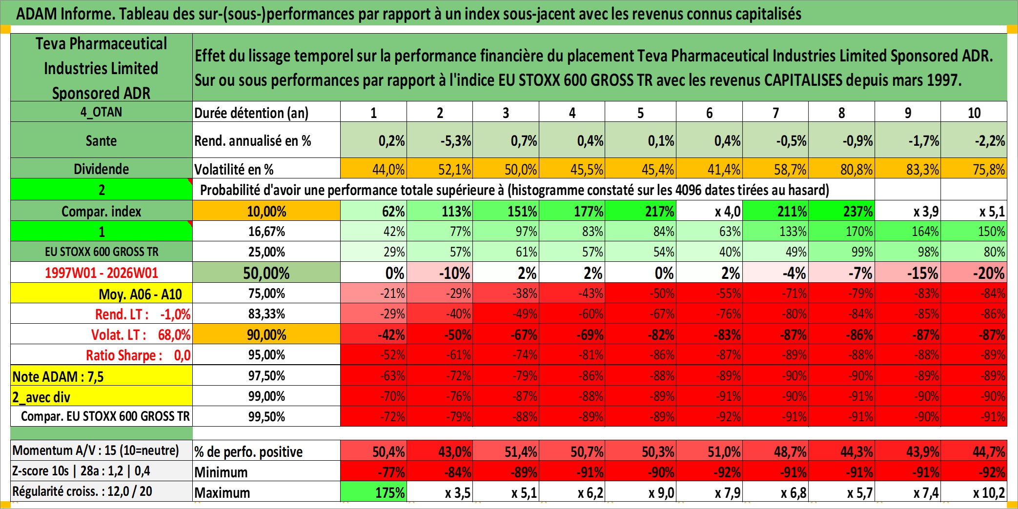 Site dédié aux investisseursPage dédiée sur site financeAnalyse des valorisations hebdomadaires de l'action Teva Pharmaceutical Industries Limited Sponsored ADR. Cet actif est cote en USD. Les valorisations sont en contrevaleur EURO et couvrent les semaines 1997W01 a 2026W01. Les revenus de cet actif financier sont pris en compte depuis la semaine 1997W10. La note ESG de cet actif n'est pas connue.