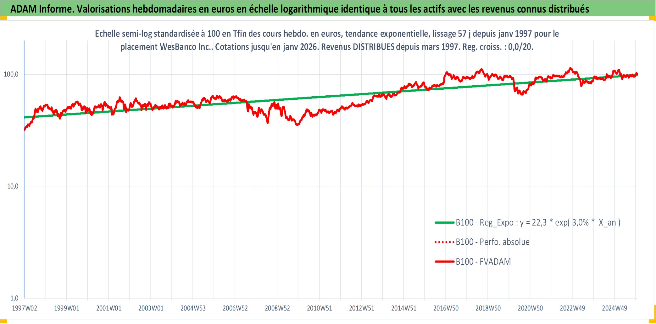 Site dédié aux investisseursPage dédiée sur site financeAnalyse des valorisations hebdomadaires de l'action WesBanco Inc.. Cet actif est cote en USD. Les valorisations sont en contrevaleur EURO et couvrent les semaines 1997W01 a 2026W01. Les revenus de cet actif financier sont pris en compte depuis la semaine 1997W11. La note ESG de cet actif n'est pas connue.