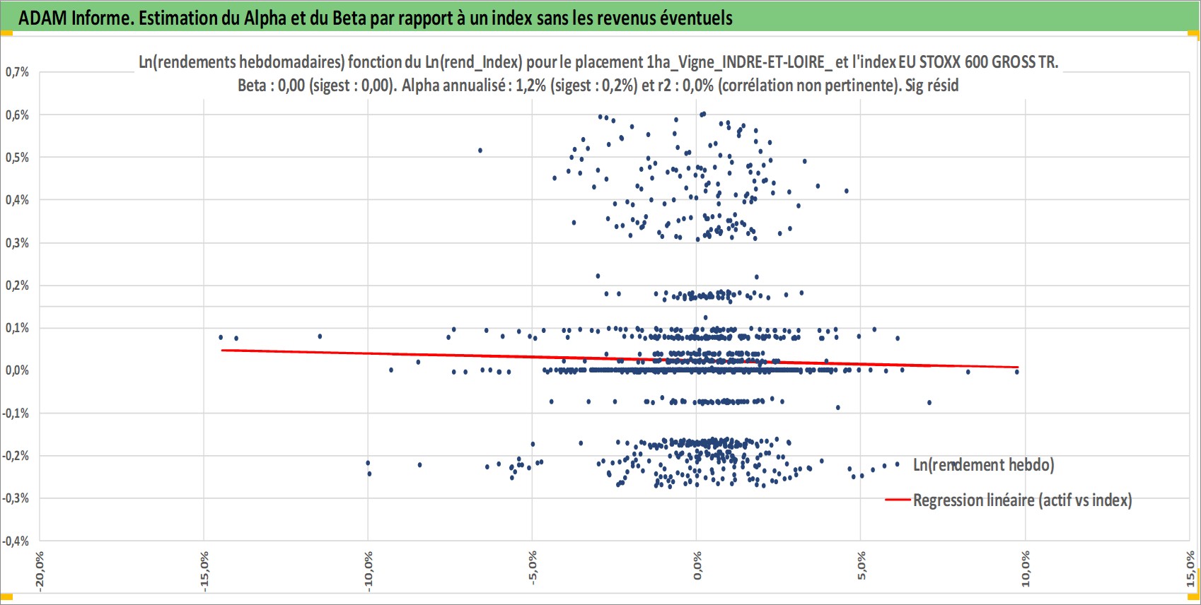 Site dédié aux investisseursPage dédiée sur site financeAnalyse des valorisations hebdomadaires de l'actif 1ha_Vigne_INDRE-ET-LOIRE_V_SAINT-NICOLAS-DE-BOURGUEIL. Cet actif est cote en EUR. Les valorisations couvrent les semaines 1997W01 a 2026W01. Les fermages de ce bien foncier sont pris egaux a 2,5% annuels de la valeur venale du bien.