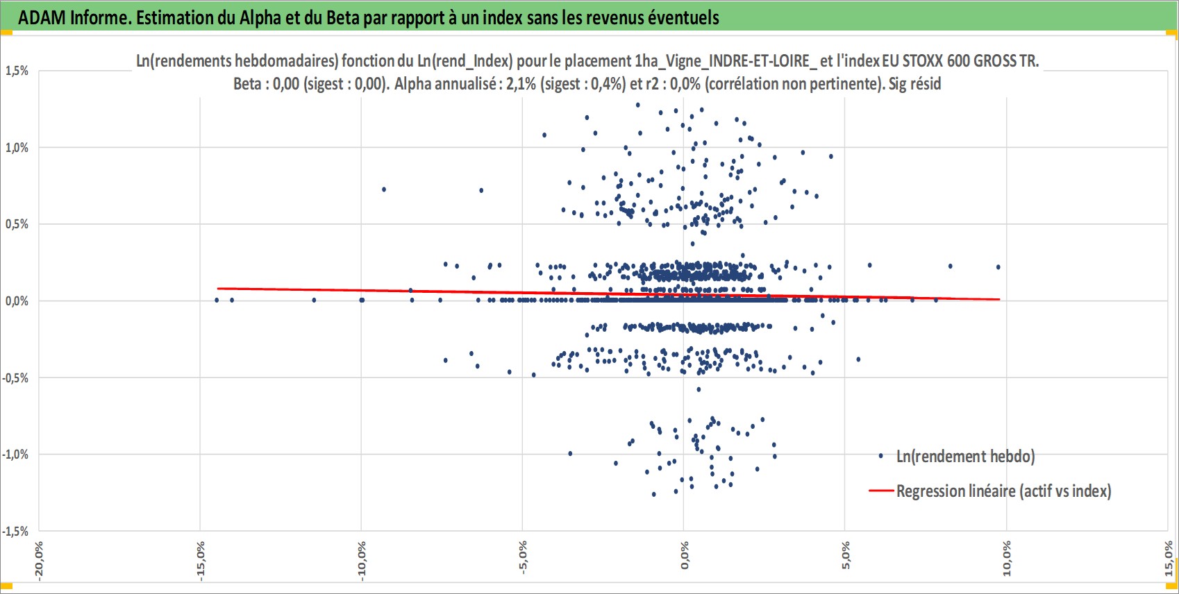 Site dédié aux investisseursPage dédiée sur site financeAnalyse des valorisations hebdomadaires de l'actif 1ha_Vigne_INDRE-ET-LOIRE_V_MONTLOUIS-SUR-LOIRE. Cet actif est cote en EUR. Les valorisations couvrent les semaines 1997W01 a 2026W01. Les fermages de ce bien foncier sont pris egaux a 2,5% annuels de la valeur venale du bien.