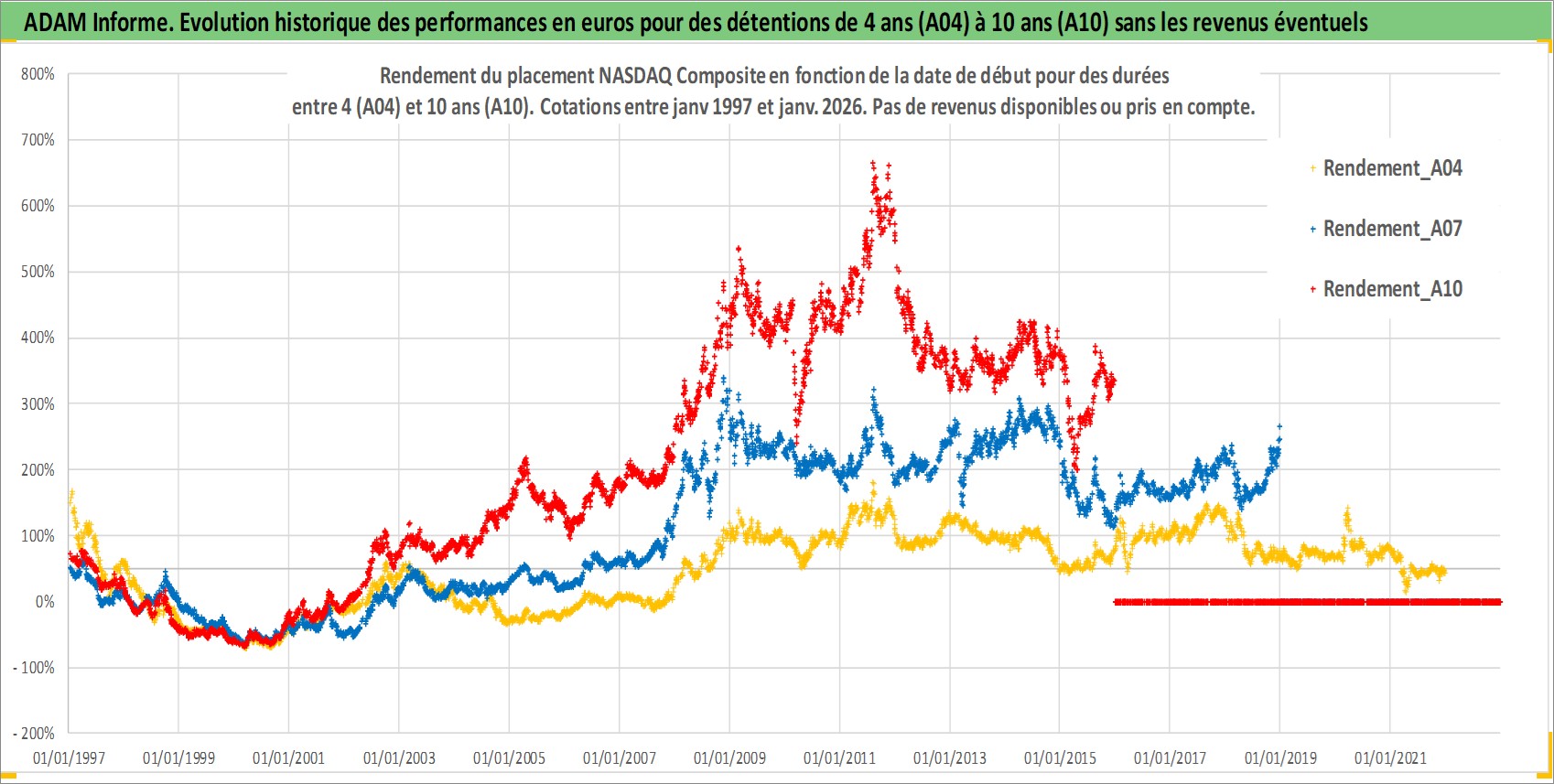 Site dédié aux investisseursPage dédiée sur site financeAnalyse des valorisations hebdomadaires de l'actif NASDAQ Composite. Cet actif est cote en USD. Les valorisations sont en contrevaleur EURO et couvrent les semaines 1997W01 a 2026W01. Les revenus de cet actif financier ne sont pas connus car non existants ou non disponibles sur le site Yahoo Finance. La note ESG de cet actif n'est pas connue.