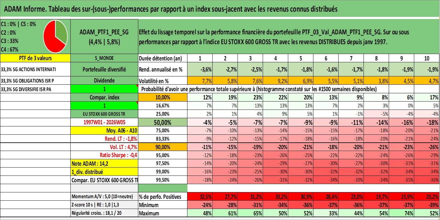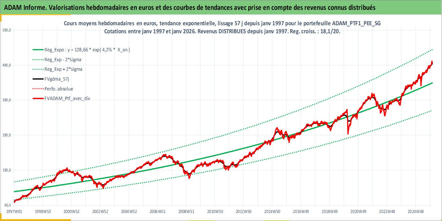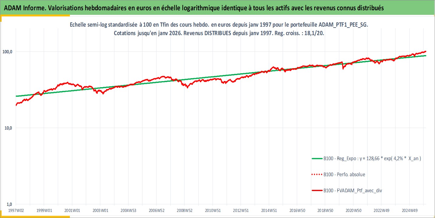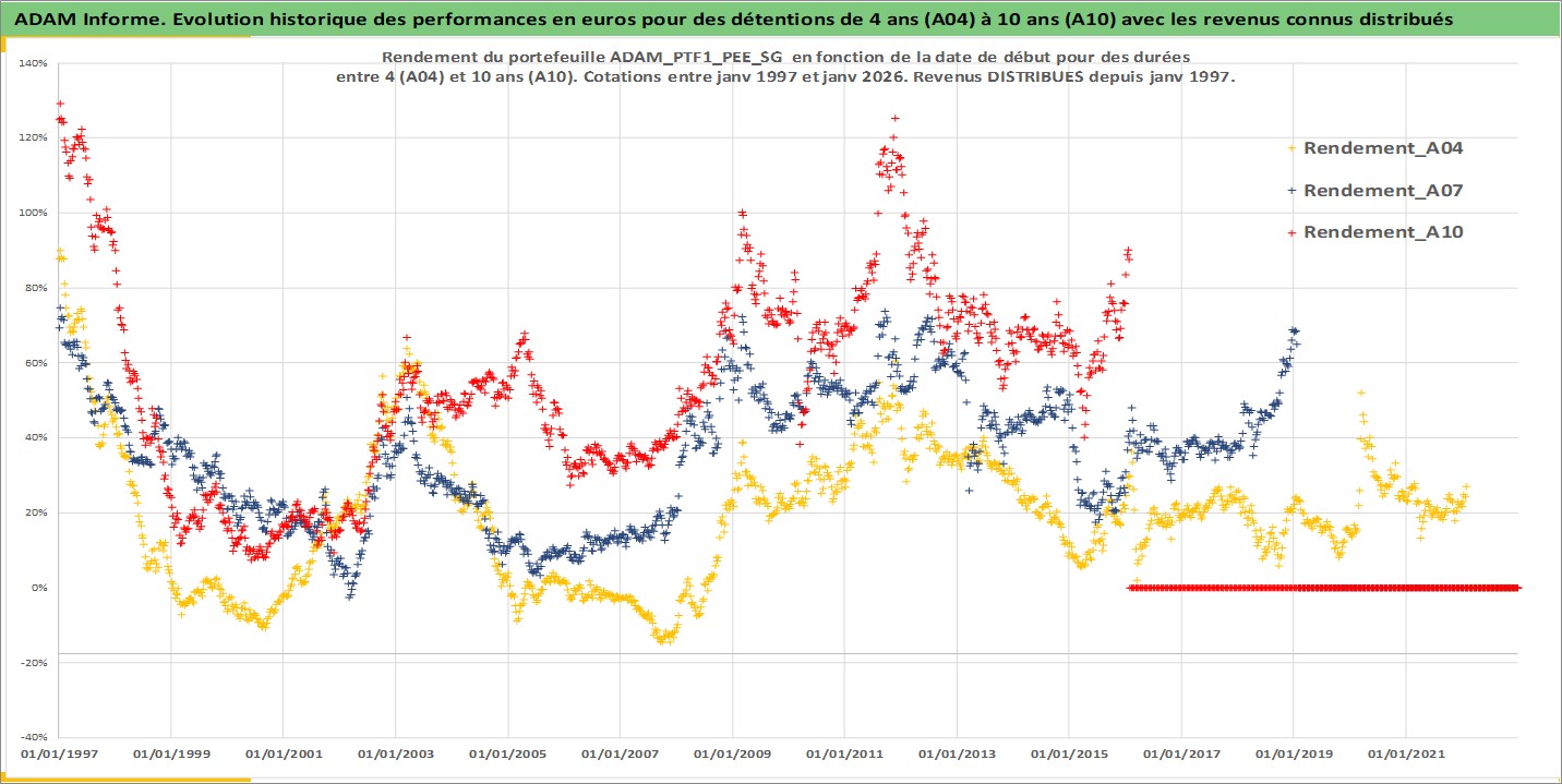 Site dédié aux investisseursPage dédiée sur site financeAnalyse des valorisations hebdomadaires du portefeuille PTF1_PEE_SG_3actifs avec un profil P6_PurActions. Ce portefeuille est cote en EUR. Les valorisations couvrent les semaines 1997W01 a 2026W05. Les revenus de cet actif financier sont pris en compte depuis la semaine 1997W01. La note ESG de cet actif n'est pas connue.