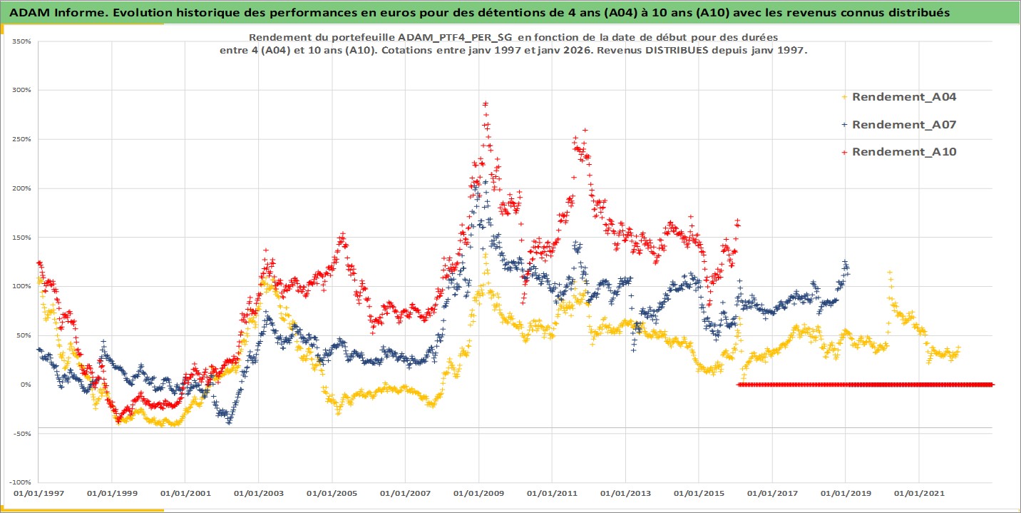 Site dédié aux investisseursPage dédiée sur site financeAnalyse des valorisations hebdomadaires du portefeuille PTF4_PER_SG_5actifs avec un profil P6_PurActions. Ce portefeuille est cote en EUR. Les valorisations couvrent les semaines 1997W01 a 2026W05. Les revenus de cet actif financier sont pris en compte depuis la semaine 1997W01. La note globale ESG de cet actif est estimee a 9.0 (apres rebasage entre 0 et 20).
