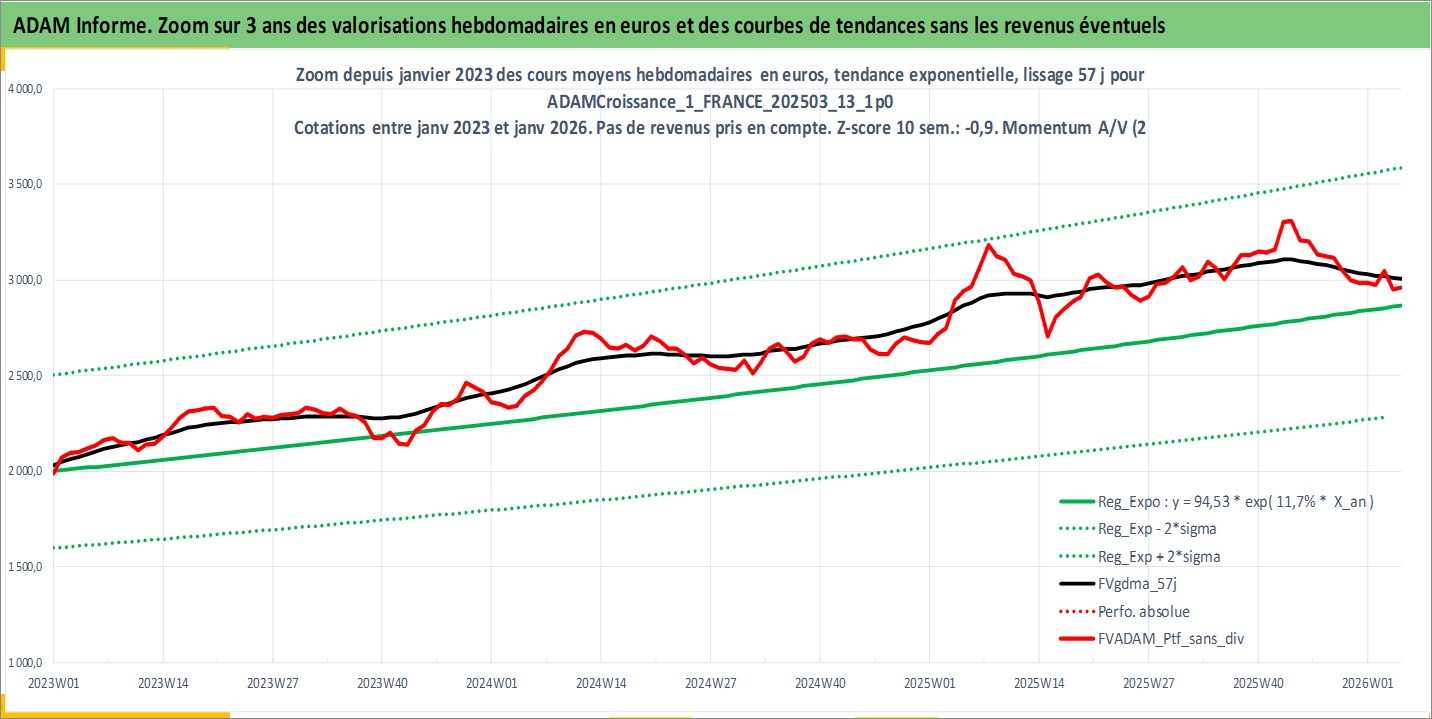 Site dédié aux investisseursPage dédiée sur site financeAnalyse des valorisations hebdomadaires du portefeuille ADAMCroissance_1_FRANCE_202503_13_1p0_4actifs avec un profil P6_PurActions. Ce portefeuille est cote en EUR. Les valorisations couvrent les semaines 1997W01 a 2026W05. Les revenus de cet actif financier sont pris en compte depuis la semaine 1997W01. La note globale ESG de cet actif est estimee a 13.5 (apres rebasage entre 0 et 20).