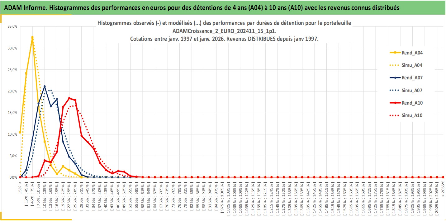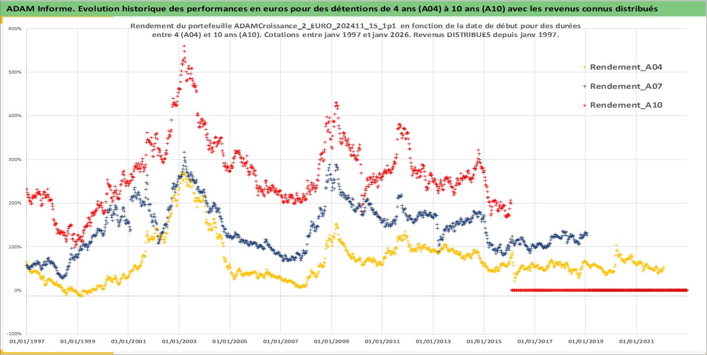 Site dédié aux investisseursPage dédiée sur site financeAnalyse des valorisations hebdomadaires du portefeuille ADAMCroissance_2_EURO_202411_15_1p1_11actifs avec un profil P6_PurActions. Ce portefeuille est cote en EUR. Les valorisations couvrent les semaines 1997W01 a 2026W05. Les revenus de cet actif financier sont pris en compte depuis la semaine 1997W01. La note globale ESG de cet actif est estimee a 10.9 (apres rebasage entre 0 et 20).