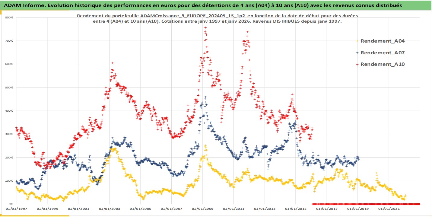Site dédié aux investisseursPage dédiée sur site financeAnalyse des valorisations hebdomadaires du portefeuille ADAMCroissance_3_EUROPE_202405_15_1p2_18actifs avec un profil P6_PurActions. Ce portefeuille est cote en EUR. Les valorisations couvrent les semaines 1997W01 a 2026W05. Les revenus de cet actif financier sont pris en compte depuis la semaine 1997W01. La note globale ESG de cet actif est estimee a 12.8 (apres rebasage entre 0 et 20).