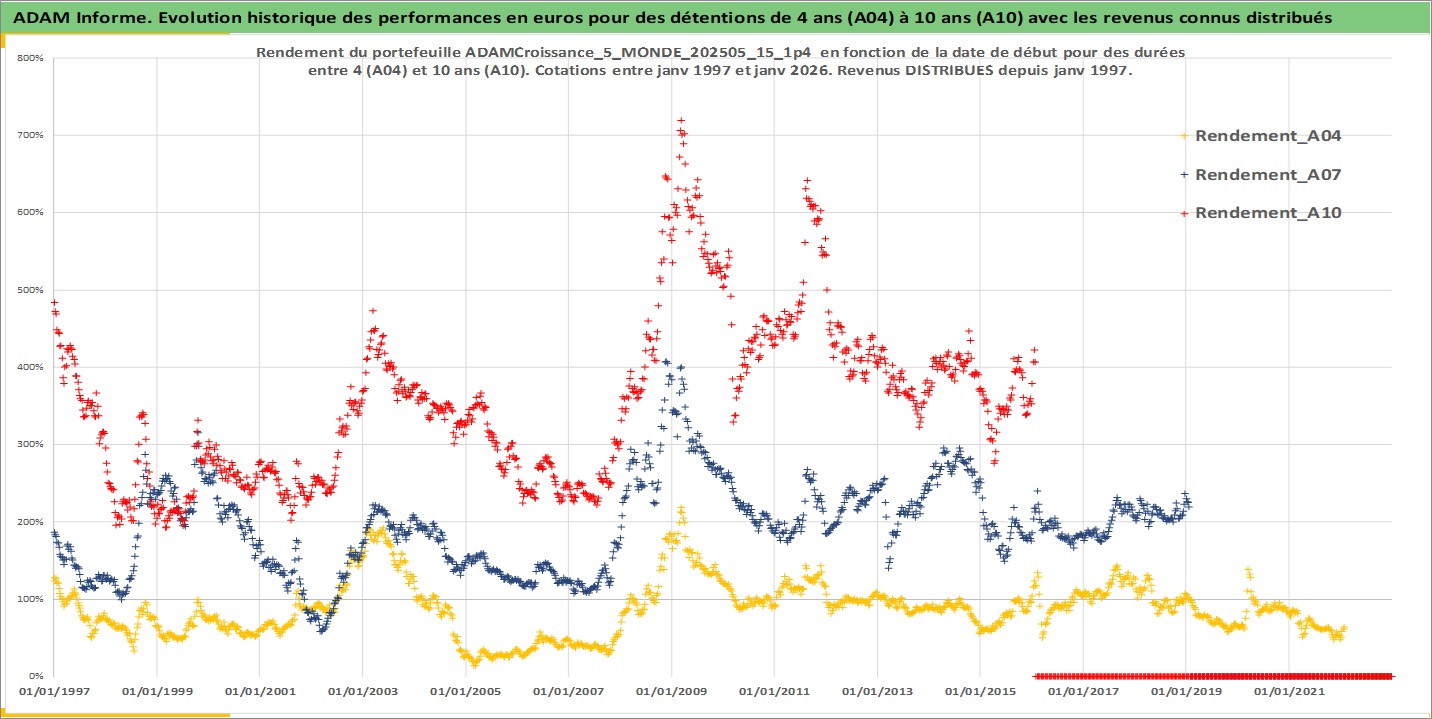 Site dédié aux investisseursPage dédiée sur site financeAnalyse des valorisations hebdomadaires du portefeuille ADAMCroissance_5_MONDE_202505_15_1p4_30actifs avec un profil P6_PurActions. Ce portefeuille est cote en EUR. Les valorisations couvrent les semaines 1997W01 a 2026W05. Les revenus de cet actif financier sont pris en compte depuis la semaine 1997W01. La note globale ESG de cet actif est estimee a 12.0 (apres rebasage entre 0 et 20).