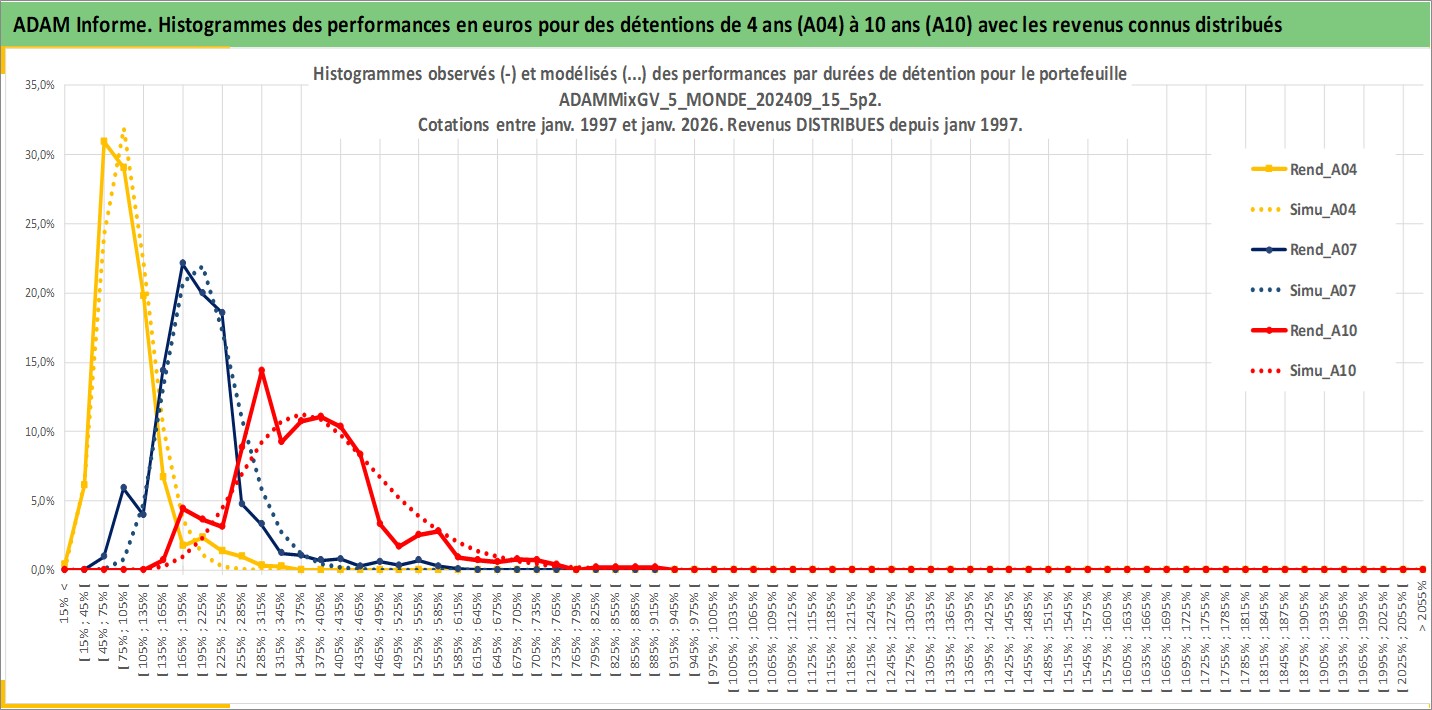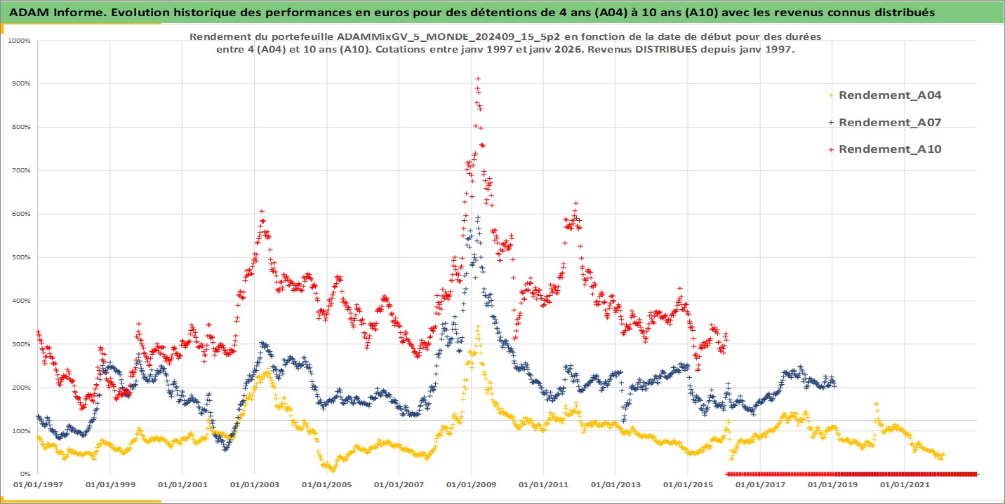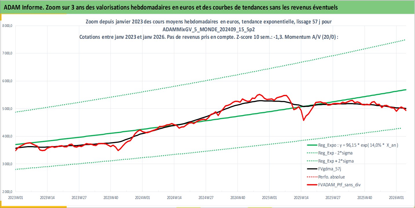 Site dédié aux investisseursPage dédiée sur site financeAnalyse des valorisations hebdomadaires du portefeuille ADAMMixGV_5_MONDE_202409_15_5p2_34actifs avec un profil P6_PurActions. Ce portefeuille est cote en EUR. Les valorisations couvrent les semaines 1997W01 a 2026W05. Les revenus de cet actif financier sont pris en compte depuis la semaine 1997W01. La note globale ESG de cet actif est estimee a 12.1 (apres rebasage entre 0 et 20).
