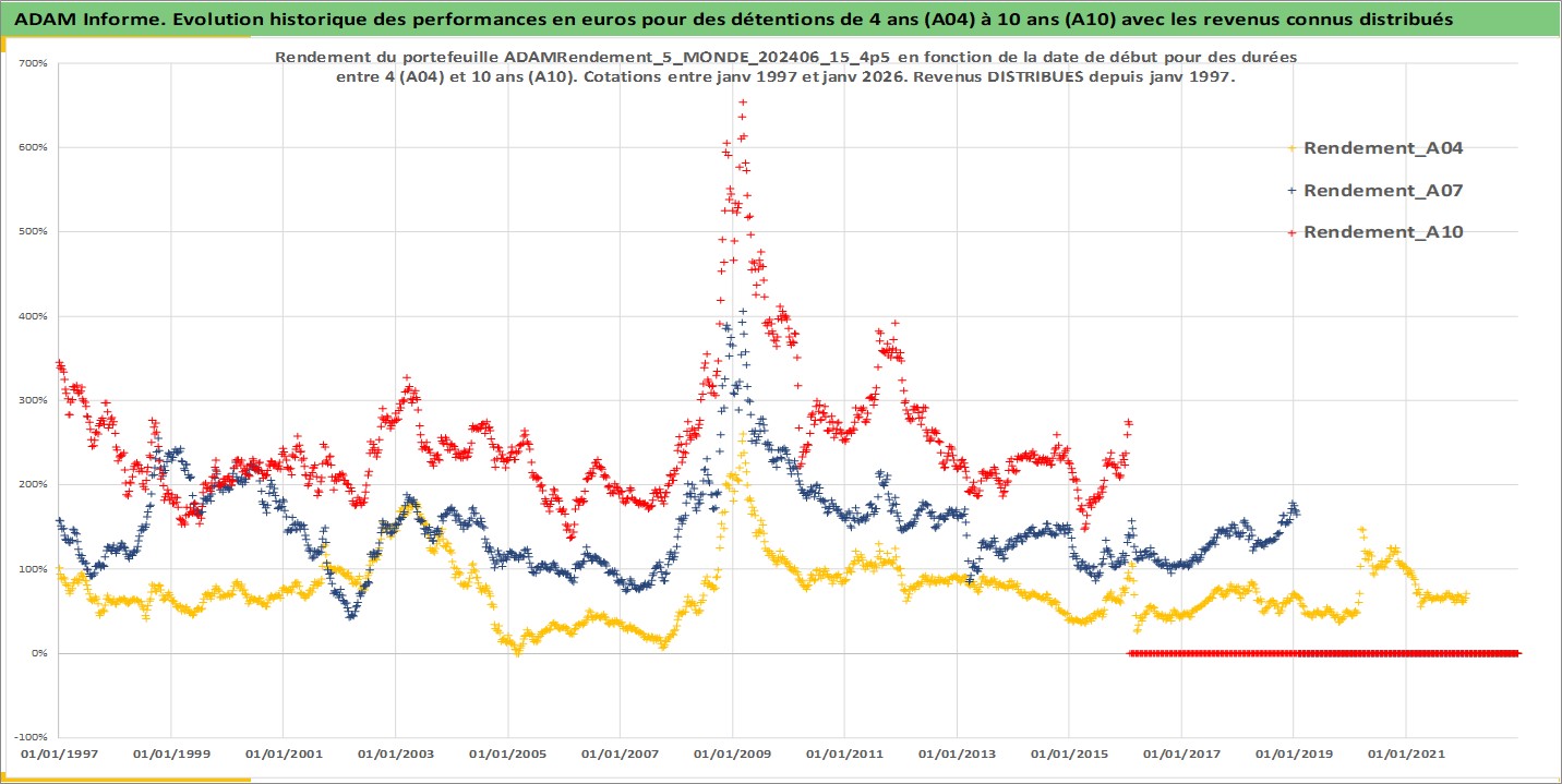 Site dédié aux investisseursPage dédiée sur site financeAnalyse des valorisations hebdomadaires du portefeuille ADAMRendement_5_MONDE_202406_15_4p5_57actifs avec un profil P6_PurActions. Ce portefeuille est cote en EUR. Les valorisations couvrent les semaines 1997W01 a 2026W05. Les revenus de cet actif financier sont pris en compte depuis la semaine 1997W01. La note globale ESG de cet actif est estimee a 9.2 (apres rebasage entre 0 et 20).