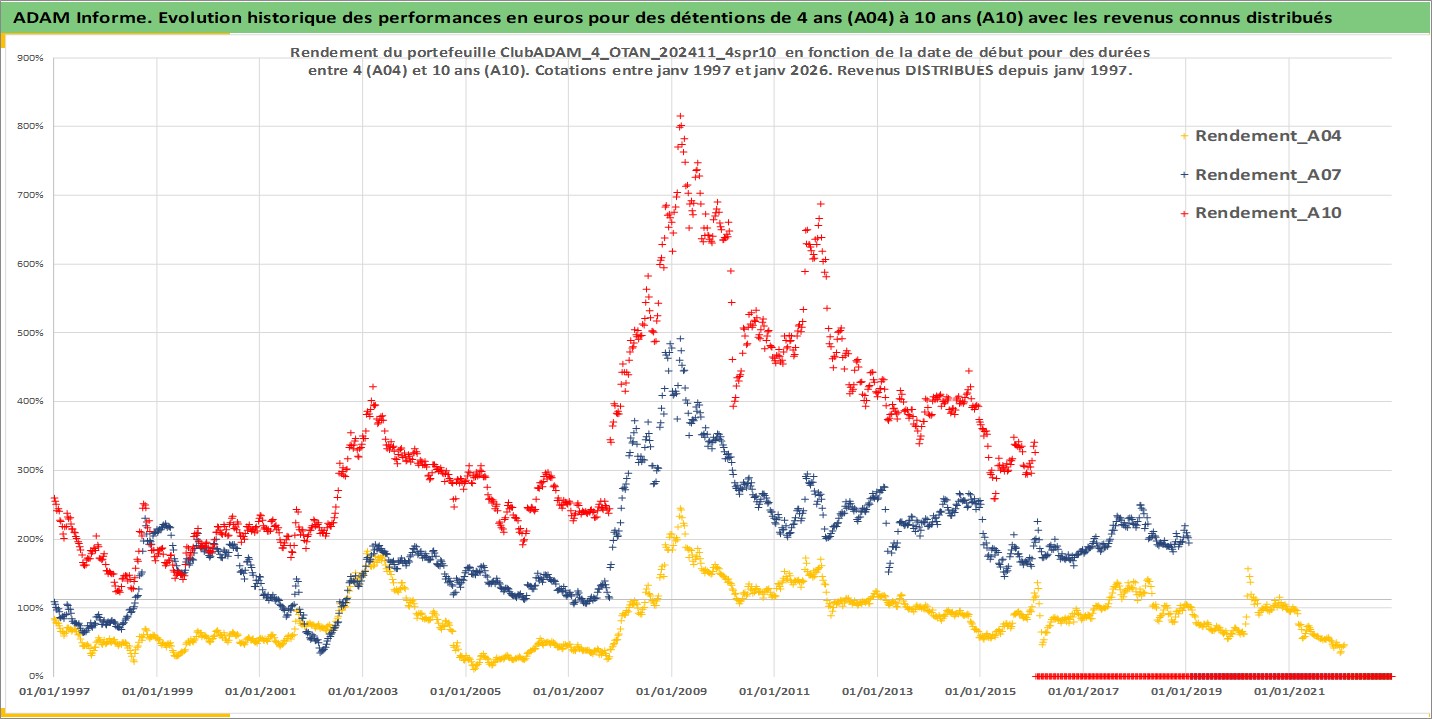 Site dédié aux investisseursPage dédiée sur site financeAnalyse des valorisations hebdomadaires du portefeuille ClubADAM_4_OTAN_202411_4spr10_29actifs avec un profil P6_PurActions. Ce portefeuille est cote en EUR. Les valorisations couvrent les semaines 1997W01 a 2026W05. Les revenus de cet actif financier sont pris en compte depuis la semaine 1997W01. La note globale ESG de cet actif est estimee a 11.4 (apres rebasage entre 0 et 20).