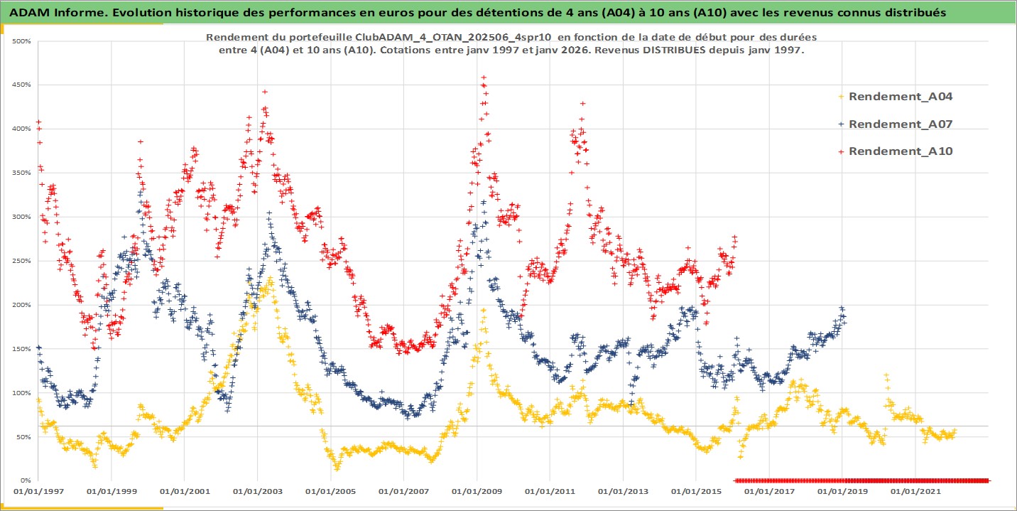 Site dédié aux investisseursPage dédiée sur site financeAnalyse des valorisations hebdomadaires du portefeuille ClubADAM_4_OTAN_202506_4spr10_17actifs avec un profil P6_PurActions. Ce portefeuille est cote en EUR. Les valorisations couvrent les semaines 1997W01 a 2026W05. Les revenus de cet actif financier sont pris en compte depuis la semaine 1997W01. La note globale ESG de cet actif est estimee a 12.9 (apres rebasage entre 0 et 20).