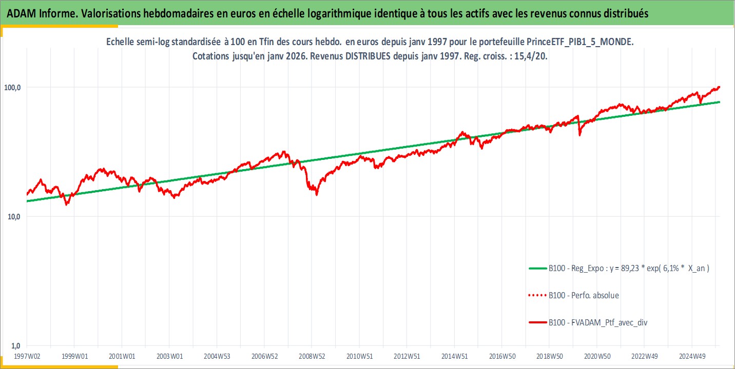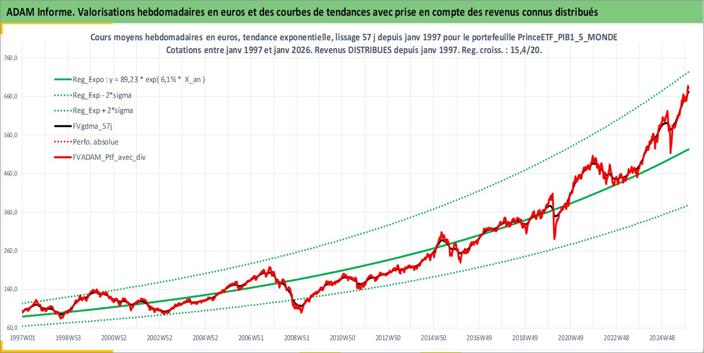 Site dédié aux investisseursPage dédiée sur site financeAnalyse des valorisations hebdomadaires du portefeuille PrinceETF_PIB1_5_MONDE_2actifs avec un profil P6_PurActions. Ce portefeuille est cote en EUR. Les valorisations couvrent les semaines 1997W01 a 2026W05. Les revenus de cet actif financier sont pris en compte depuis la semaine 1997W01. La note ESG de cet actif n'est pas connue.