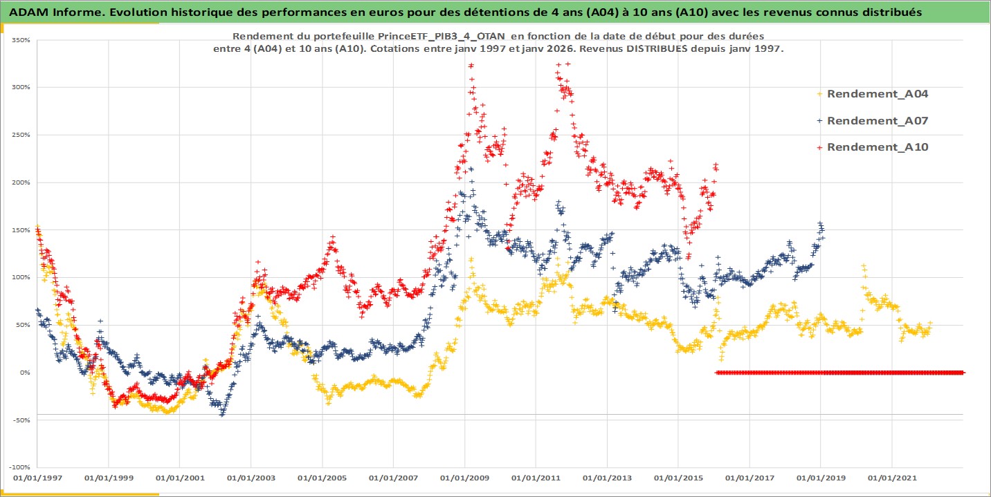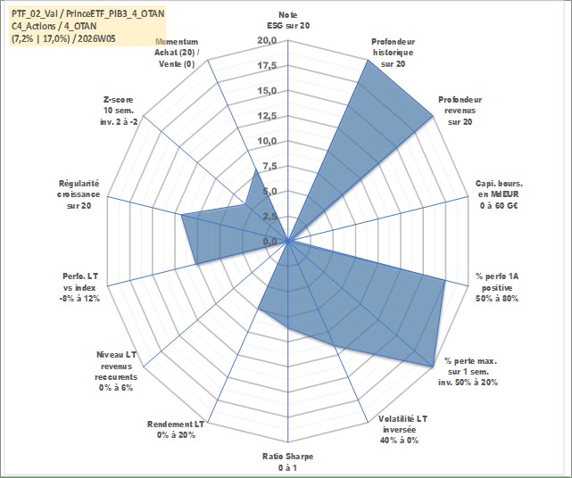 Site dédié aux investisseursPage dédiée sur site financeAnalyse des valorisations hebdomadaires du portefeuille PrinceETF_PIB3_4_OTAN_2actifs avec un profil P6_PurActions. Ce portefeuille est cote en EUR. Les valorisations couvrent les semaines 1997W01 a 2026W05. Les revenus de cet actif financier sont pris en compte depuis la semaine 1997W01. La note ESG de cet actif n'est pas connue.