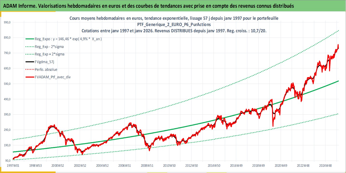 Site dédié aux investisseursPage dédiée sur site financeAnalyse des valorisations hebdomadaires du portefeuille PTF_Generique_2_EURO_P6_PurActions_2actifs avec un profil P6_PurActions. Ce portefeuille est cote en EUR. Les valorisations couvrent les semaines 1997W01 a 2026W05. Les revenus de cet actif financier sont pris en compte depuis la semaine 1997W01. La note ESG de cet actif n'est pas connue.