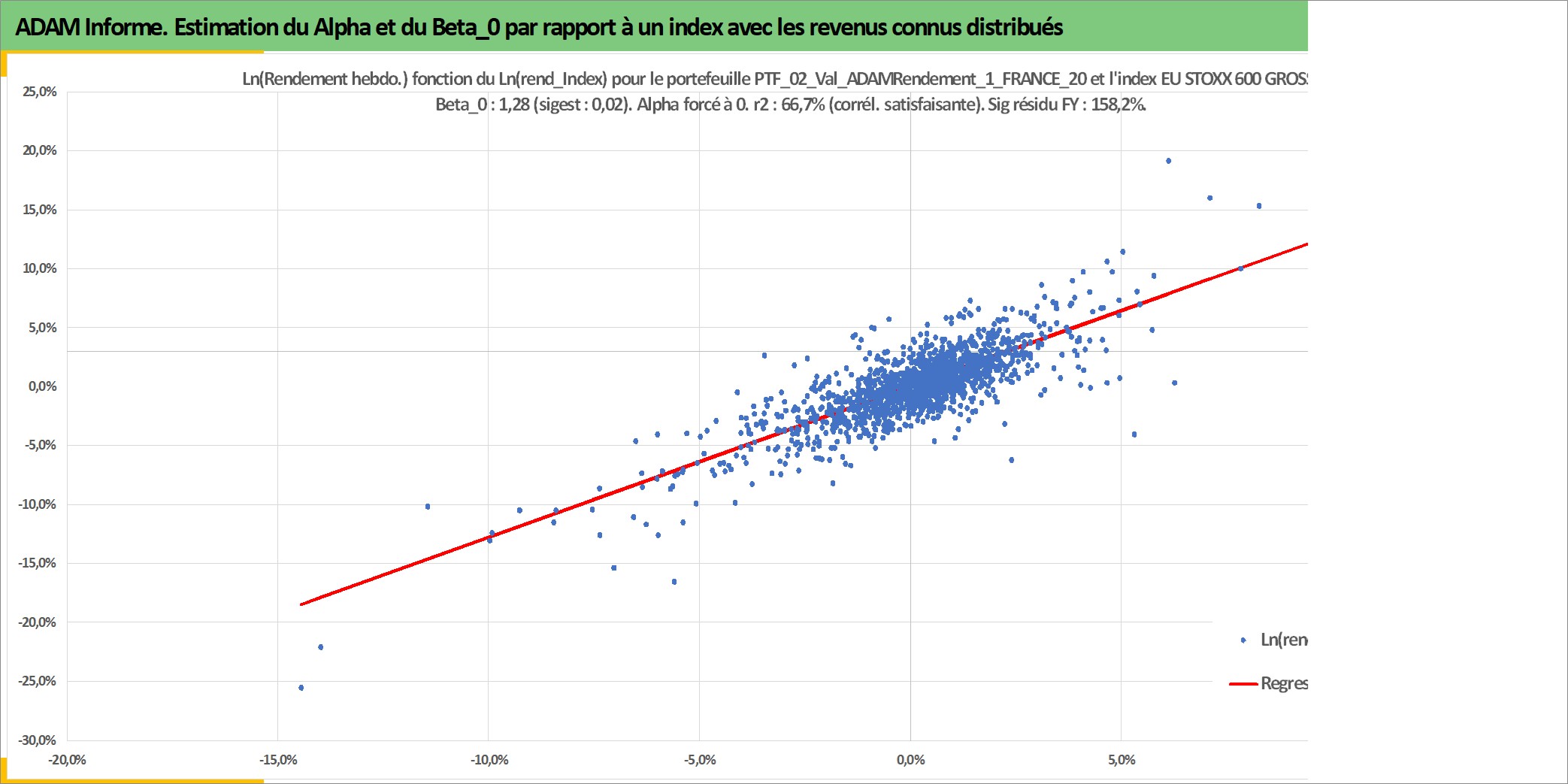 Site dédié aux investisseursPage dédiée sur site financeAnalyse des valorisations hebdomadaires du portefeuille ADAMRendement_1_FRANCE_202406_15_4p5_2actifs avec un profil P6_PurActions. Ce portefeuille est cote en EUR. Les valorisations couvrent les semaines 1997W01 a 2026W13. Les revenus de cet actif financier sont pris en compte depuis la semaine 1997W01. La note globale ESG de cet actif est estimee a 8.5 (apres rebasage entre 0 et 20).