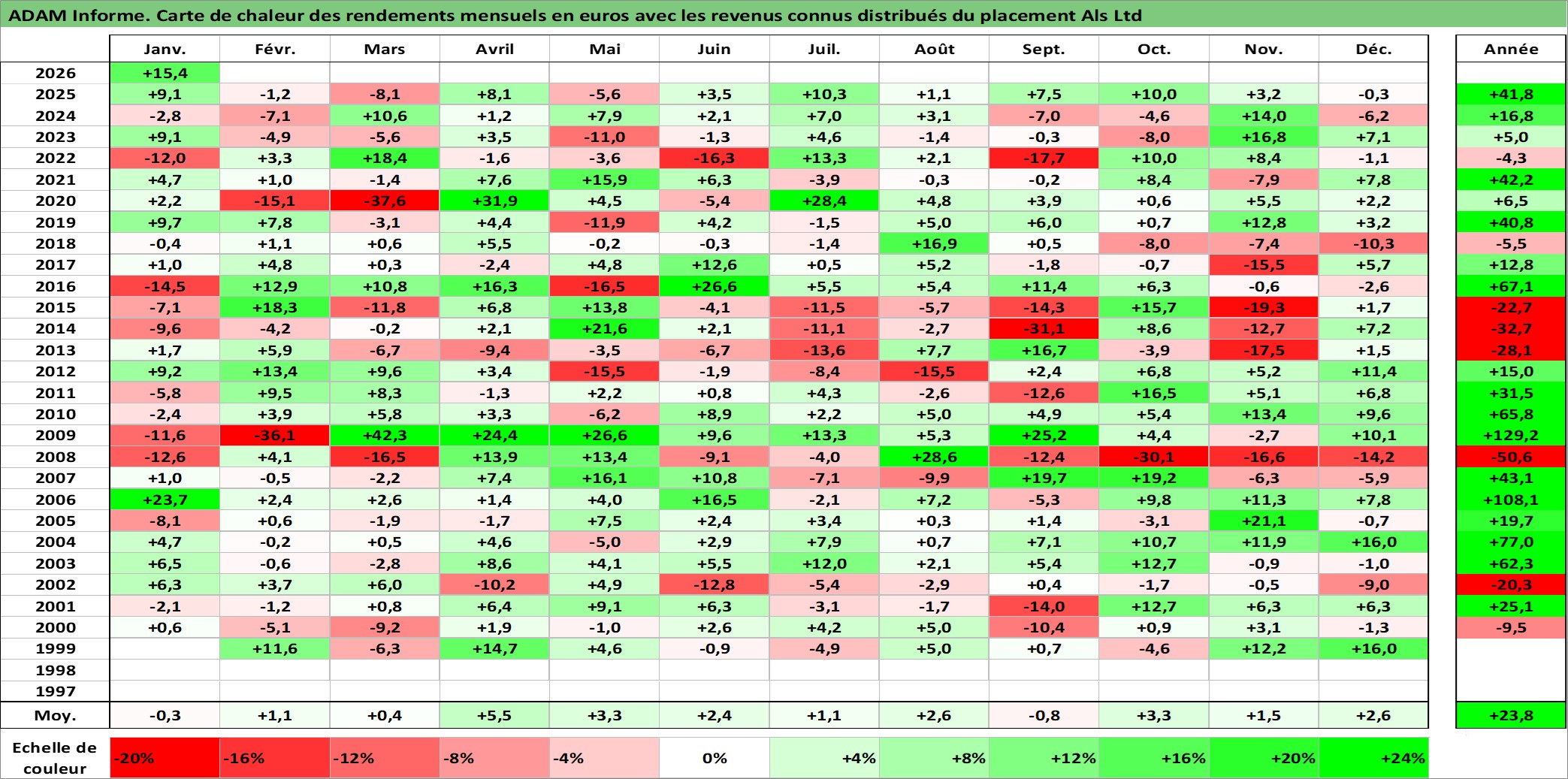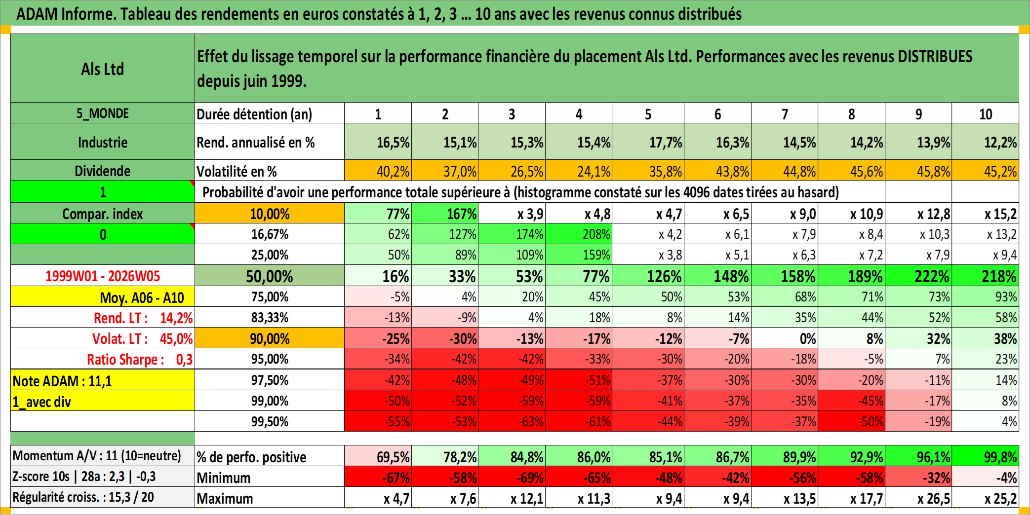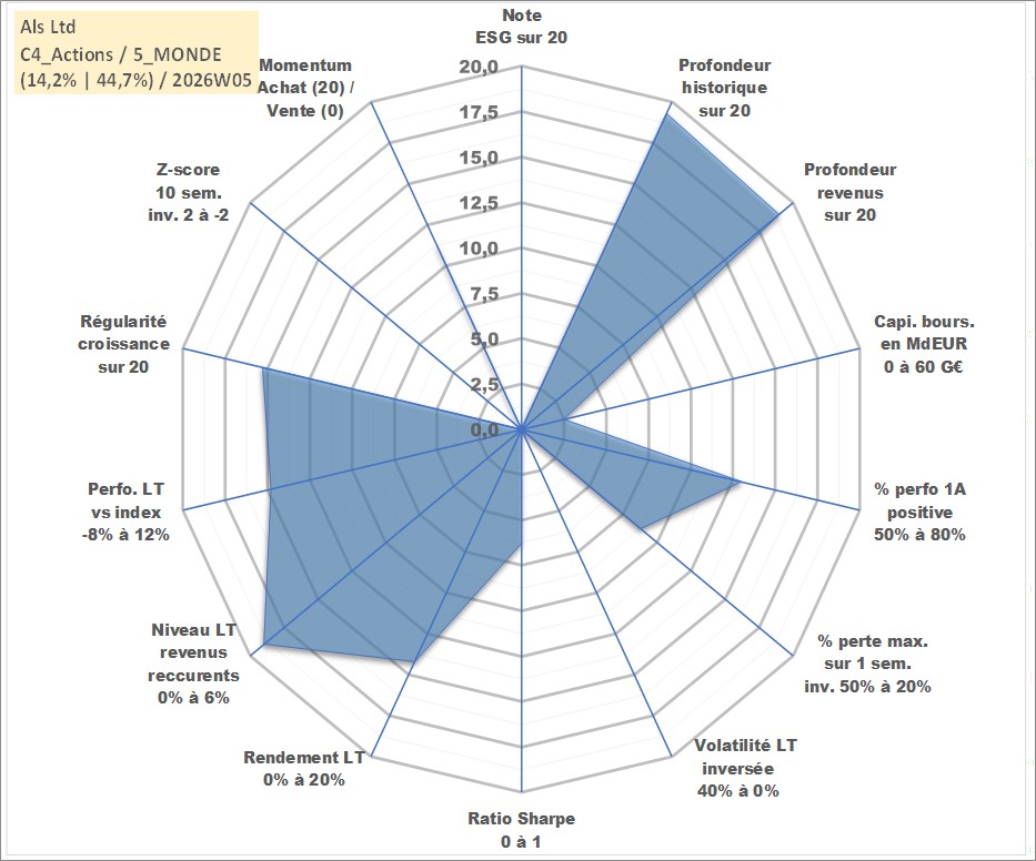 Site dédié aux investisseursPage dédiée sur site financeAnalyse des valorisations hebdomadaires de l'action Als Ltd. Cet actif est cote en AUD. Les valorisations sont en contrevaleur EURO et couvrent les semaines 1999W01 a 2026W05. Les revenus de cet actif financier sont pris en compte depuis la semaine 1999W23. La note ESG de cet actif n'est pas connue.