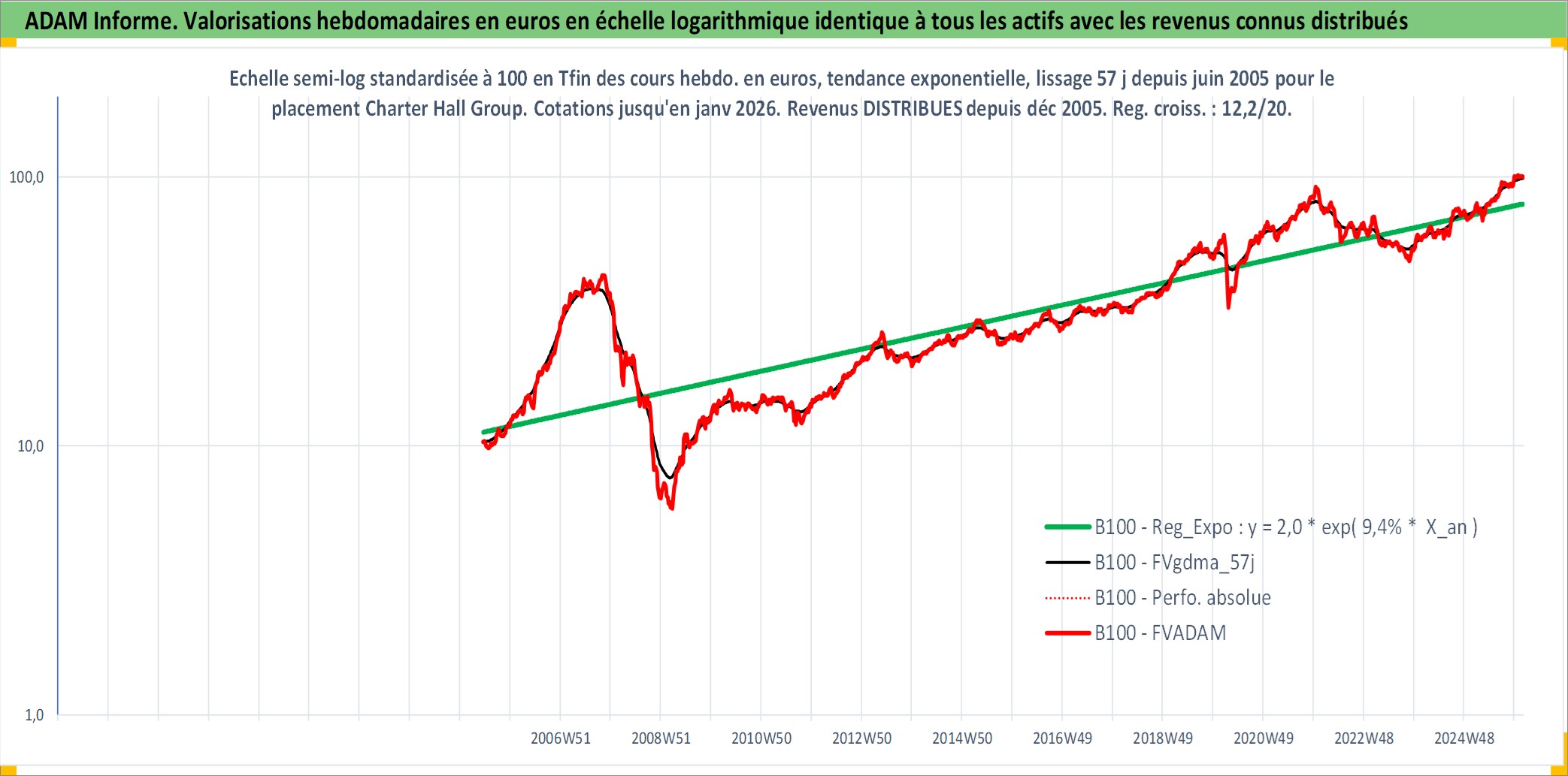 Site dédié aux investisseursPage dédiée sur site financeAnalyse des valorisations hebdomadaires de l'action Charter Hall Group. Cet actif est cote en AUD. Les valorisations sont en contrevaleur EURO et couvrent les semaines 2005W23 a 2026W05. Les revenus de cet actif financier sont pris en compte depuis la semaine 2005W51. La note ESG de cet actif n'est pas connue.