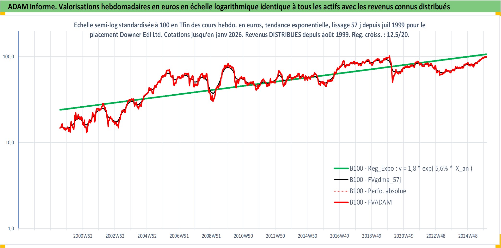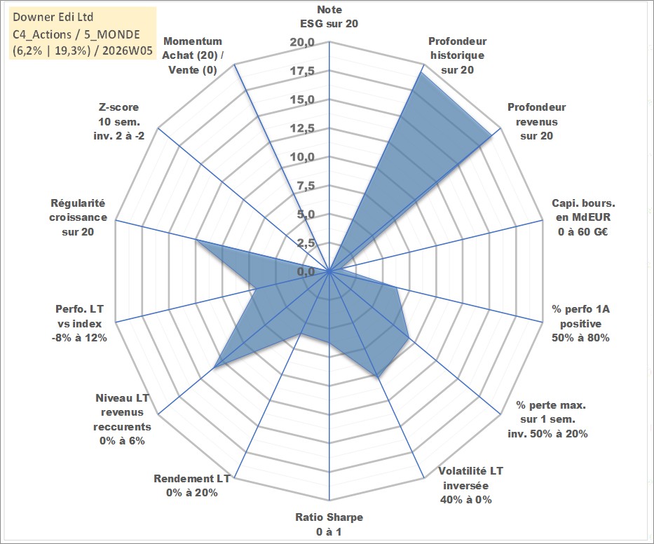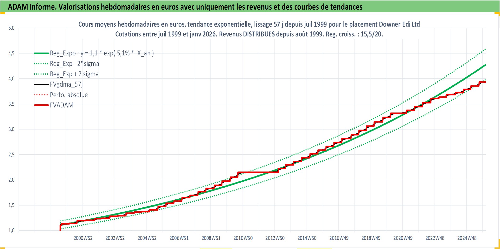 Site dédié aux investisseursPage dédiée sur site financeAnalyse des valorisations hebdomadaires de l'action Downer Edi Ltd. Cet actif est cote en AUD. Les valorisations sont en contrevaleur EURO et couvrent les semaines 1999W30 a 2026W05. Les revenus de cet actif financier sont pris en compte depuis la semaine 1999W34. La note ESG de cet actif n'est pas connue.