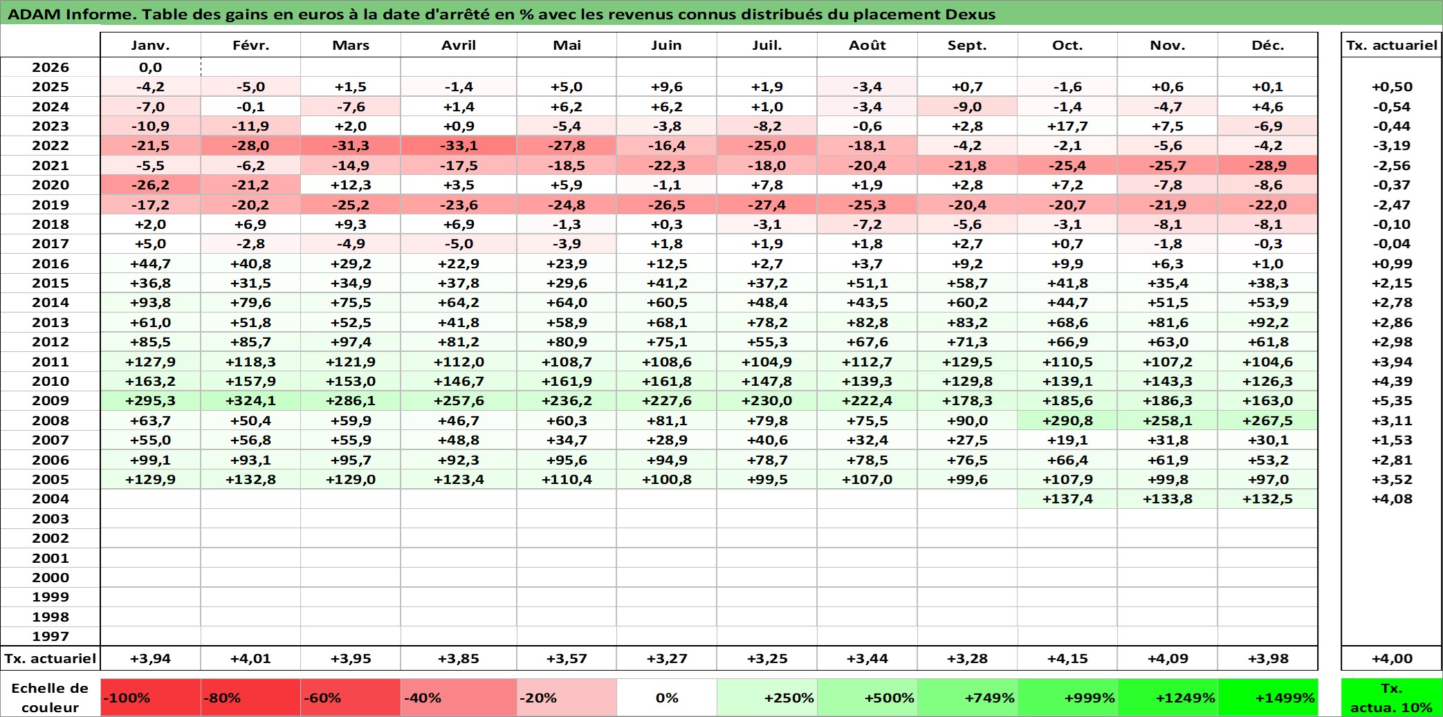 Dernière perfo 10 ans en %
