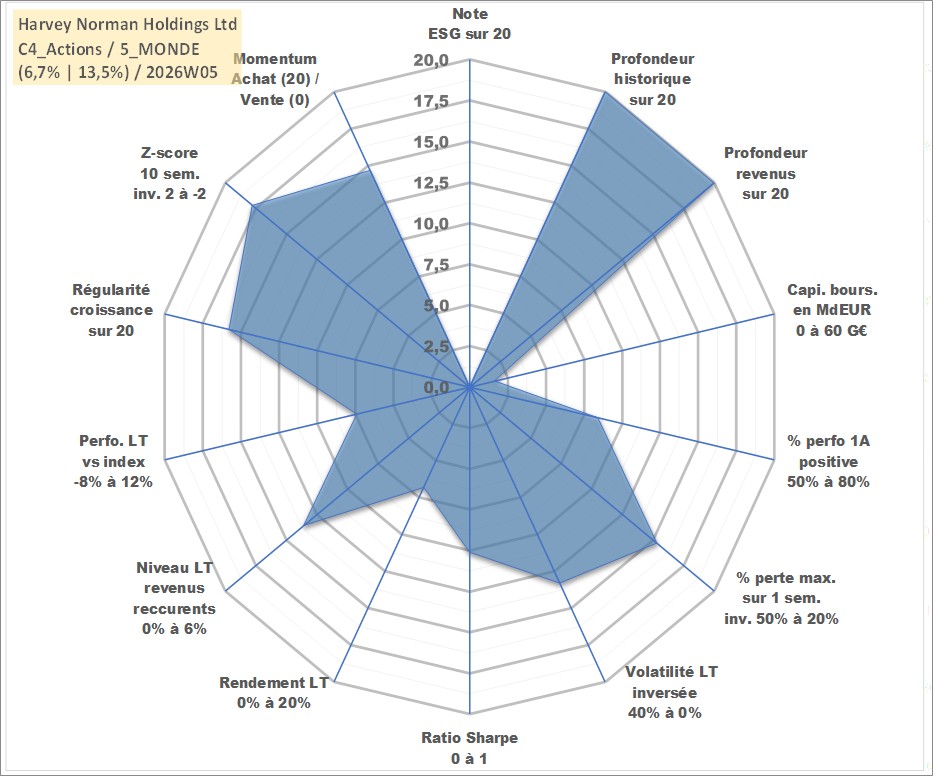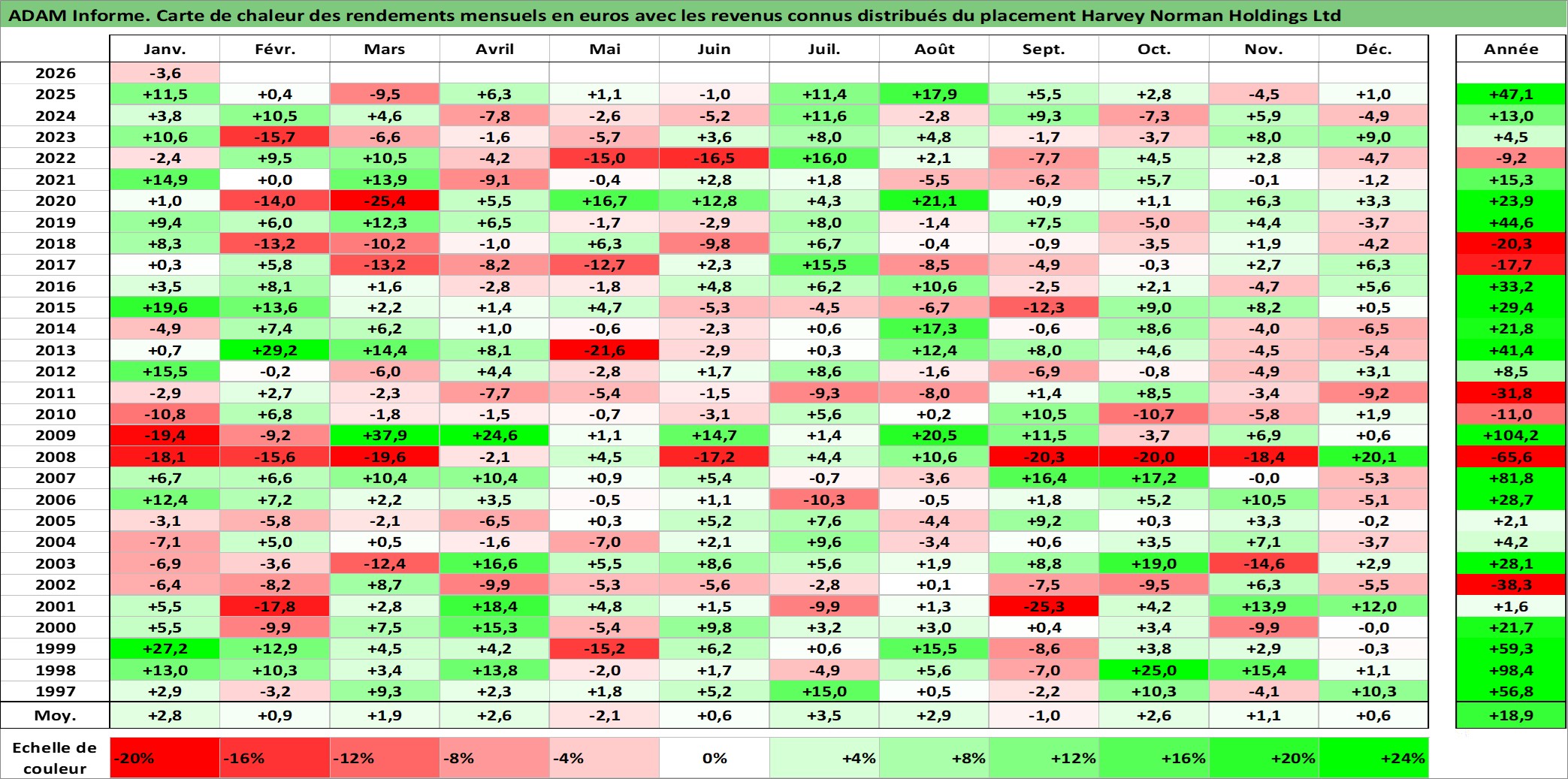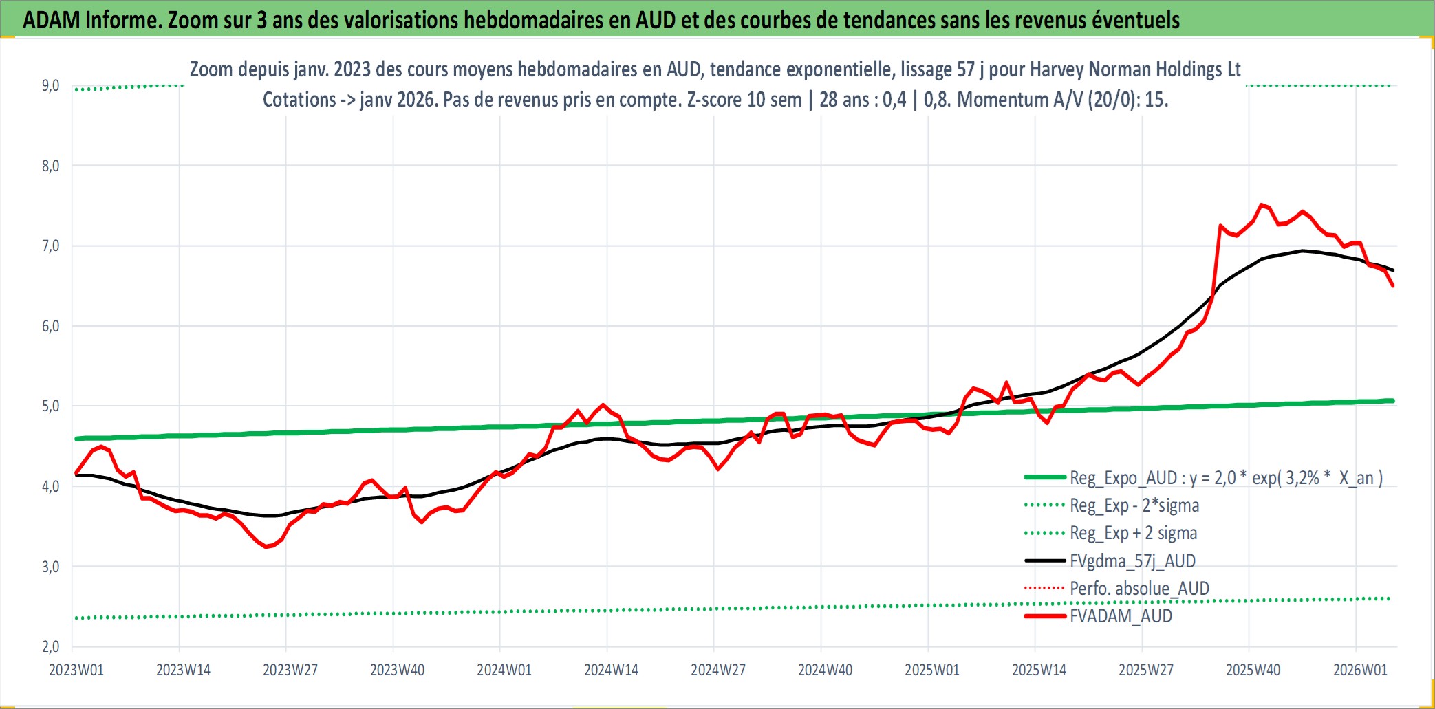 Site dédié aux investisseursPage dédiée sur site financeAnalyse des valorisations hebdomadaires de l'action Harvey Norman Holdings Ltd. Cet actif est cote en AUD. Les valorisations sont en contrevaleur EURO et couvrent les semaines 1997W01 a 2026W05. Les revenus de cet actif financier sont pris en compte depuis la semaine 1997W15. La note ESG de cet actif n'est pas connue.