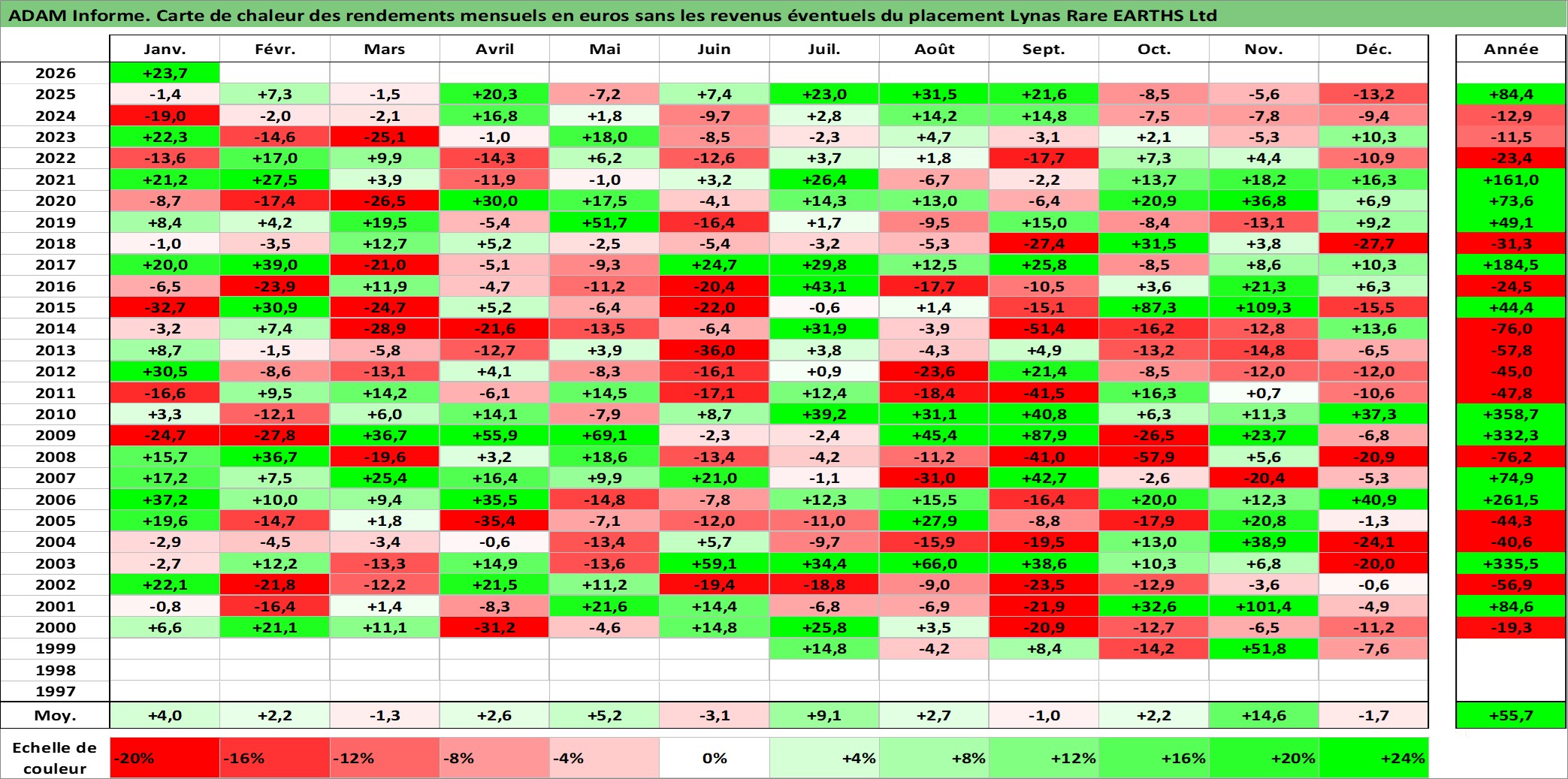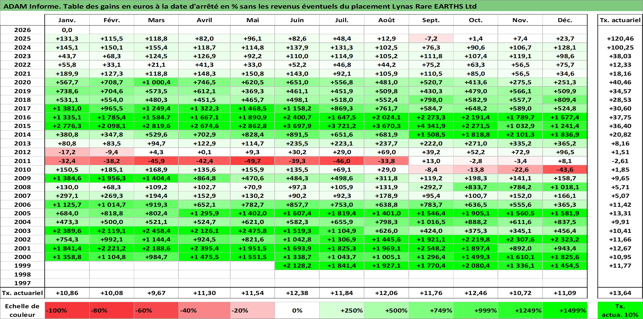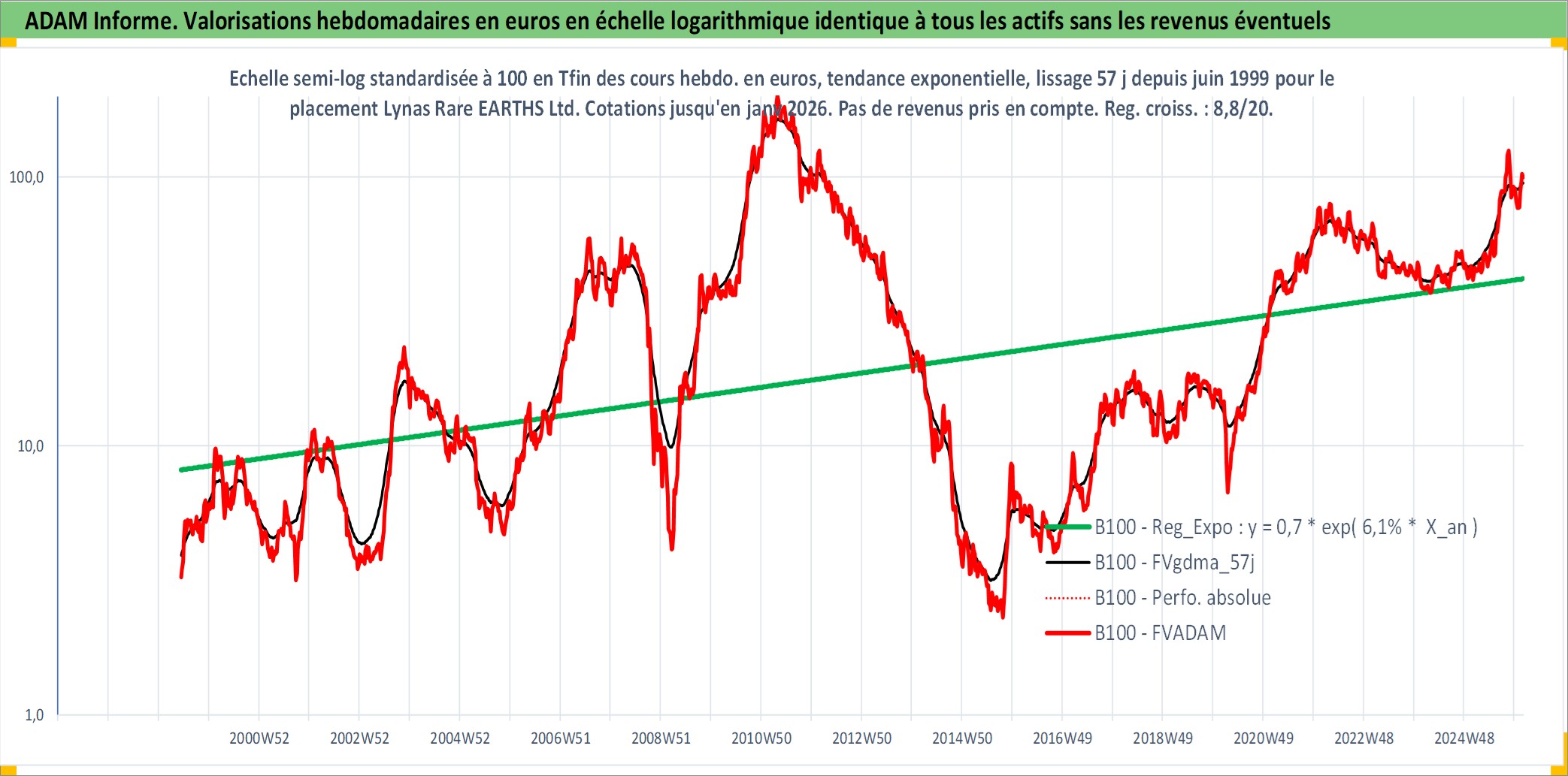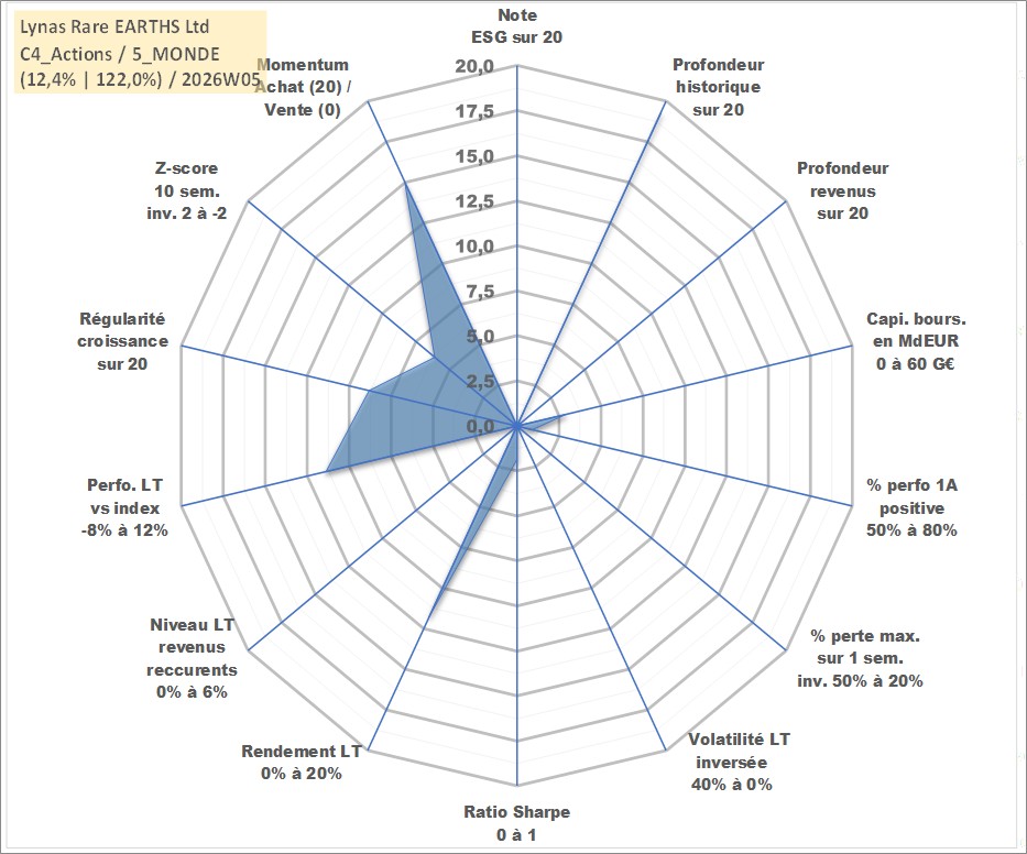 Site dédié aux investisseursPage dédiée sur site financeAnalyse des valorisations hebdomadaires de l'action Lynas Rare EARTHS Ltd. Cet actif est cote en AUD. Les valorisations sont en contrevaleur EURO et couvrent les semaines 1999W23 a 2026W05. Les revenus de cet actif financier ne sont pas connus car non existants ou non disponibles sur le site Yahoo Finance. La note ESG de cet actif n'est pas connue.