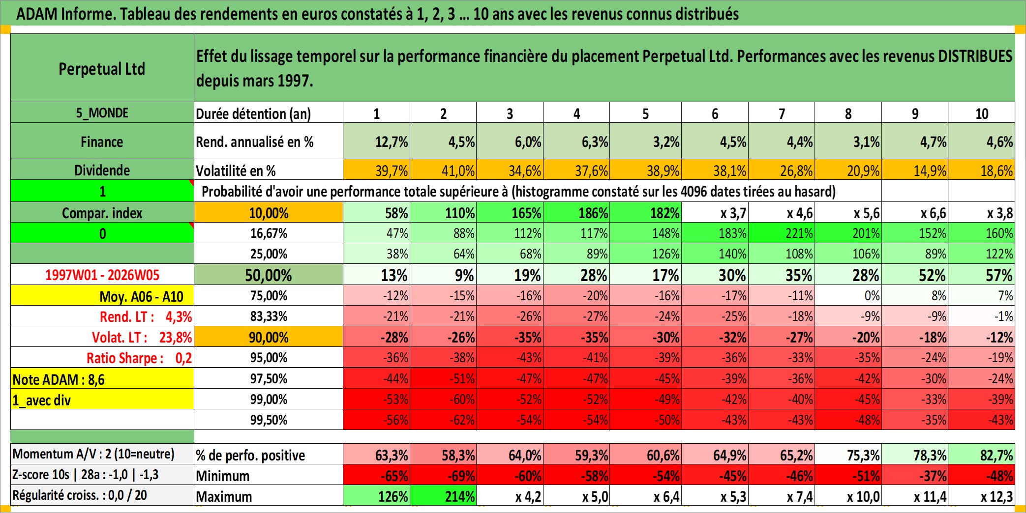Dernière perfo 10 ans en %