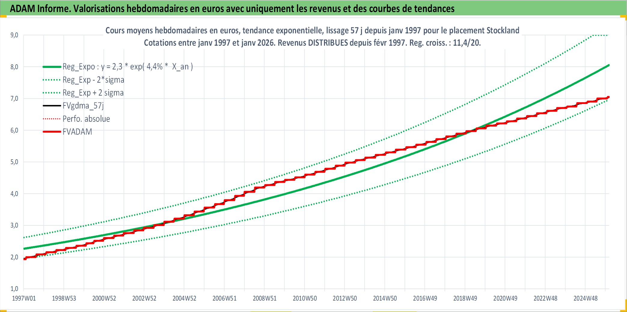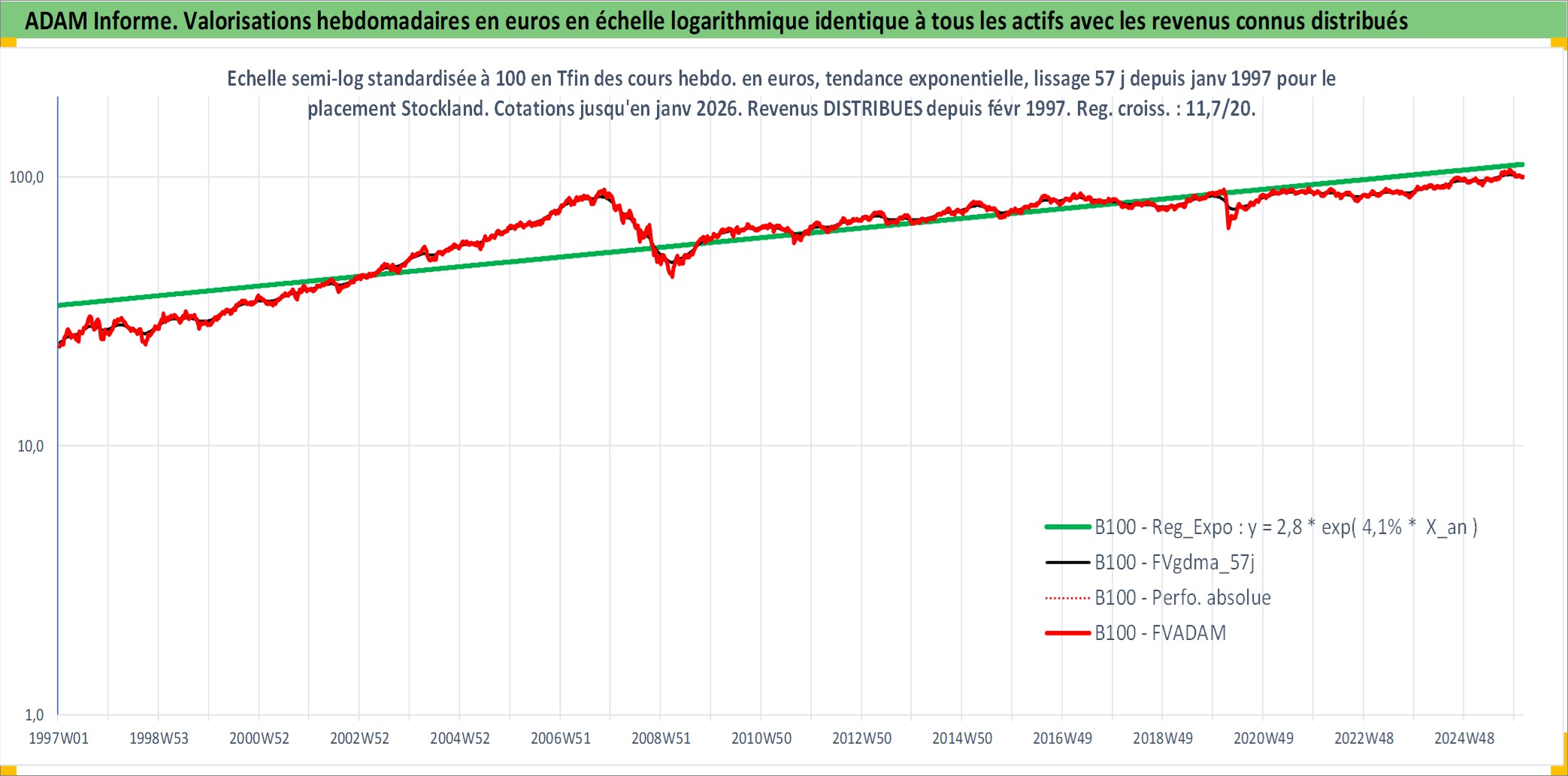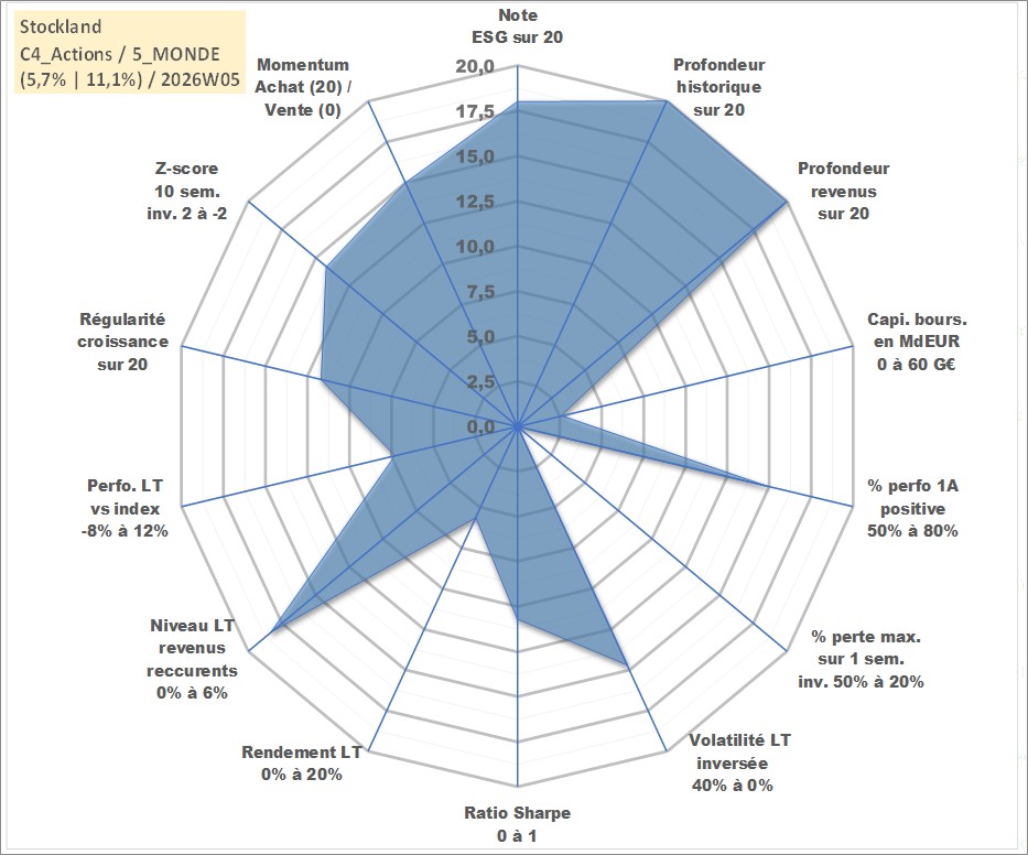 Site dédié aux investisseursPage dédiée sur site financeAnalyse des valorisations hebdomadaires de l'action Stockland. Cet actif est cote en AUD. Les valorisations sont en contrevaleur EURO et couvrent les semaines 1997W01 a 2026W05. Les revenus de cet actif financier sont pris en compte depuis la semaine 1997W07. La note globale ESG de cet actif est estimee a 18.0 (apres rebasage entre 0 et 20).