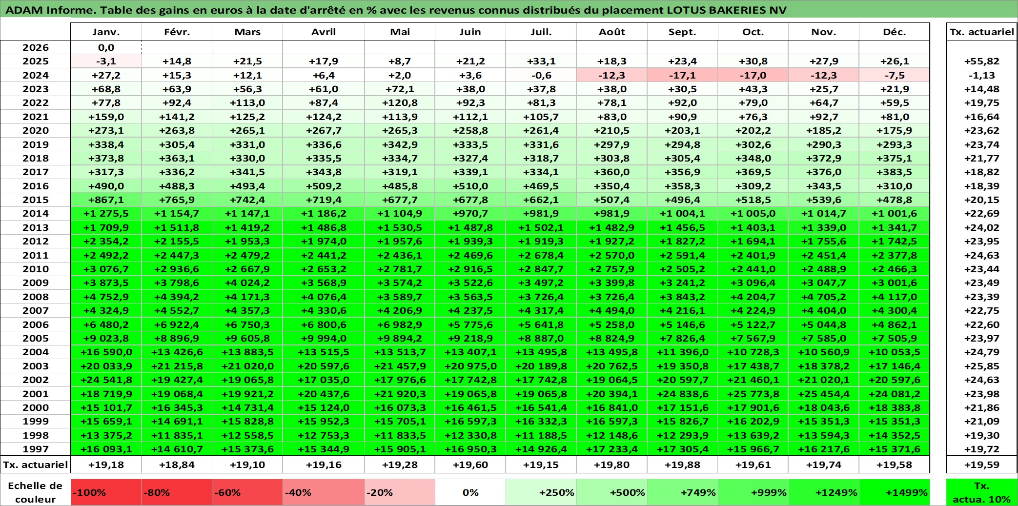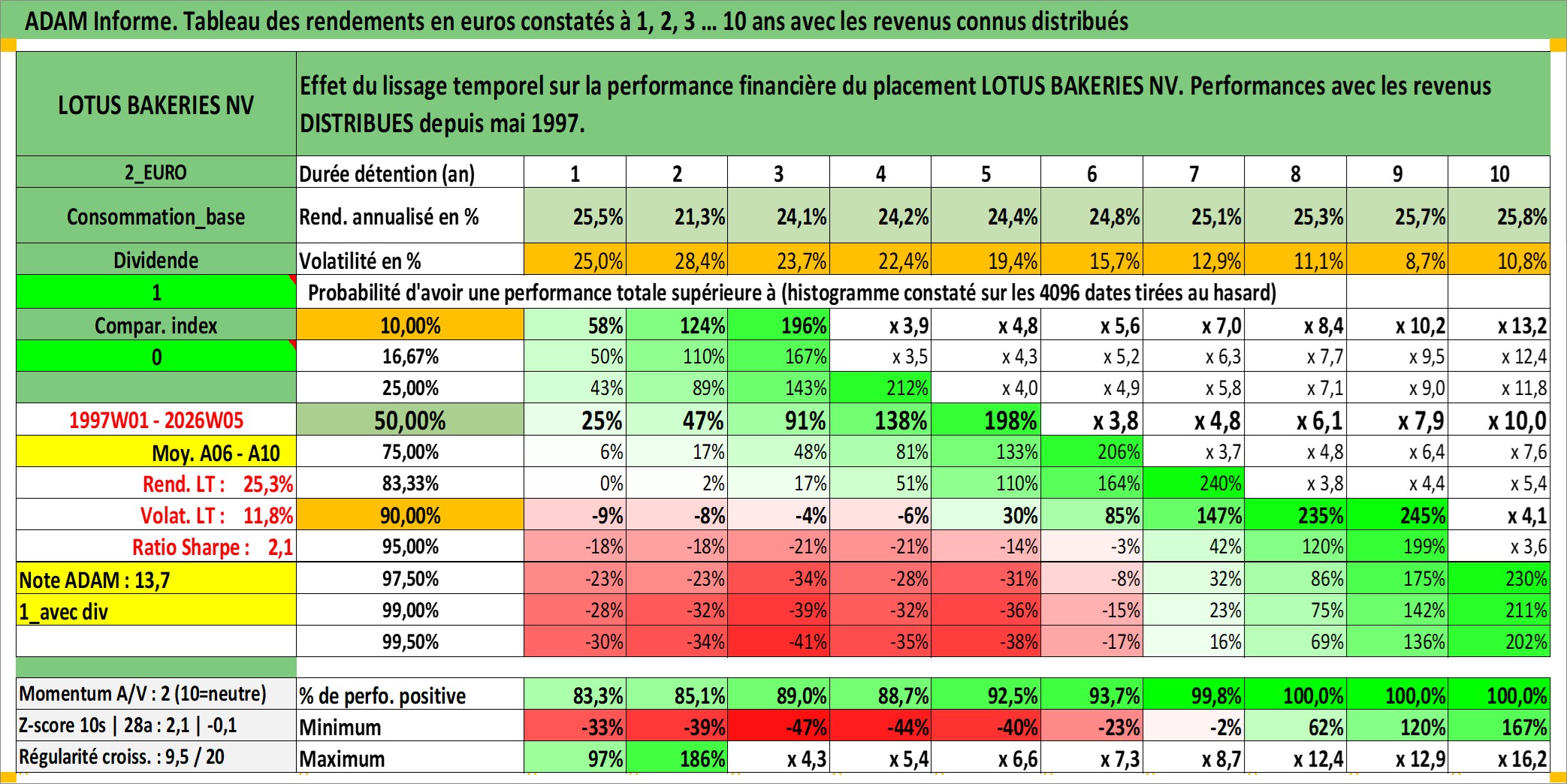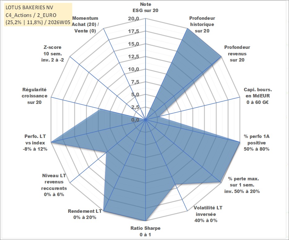 Site dédié aux investisseursPage dédiée sur site financeAnalyse des valorisations hebdomadaires de l'action LOTUS BAKERIES NV. Cet actif est cote en EUR. Les valorisations couvrent les semaines 1997W01 a 2026W05. Les revenus de cet actif financier sont pris en compte depuis la semaine 1997W20. La note ESG de cet actif n'est pas connue.