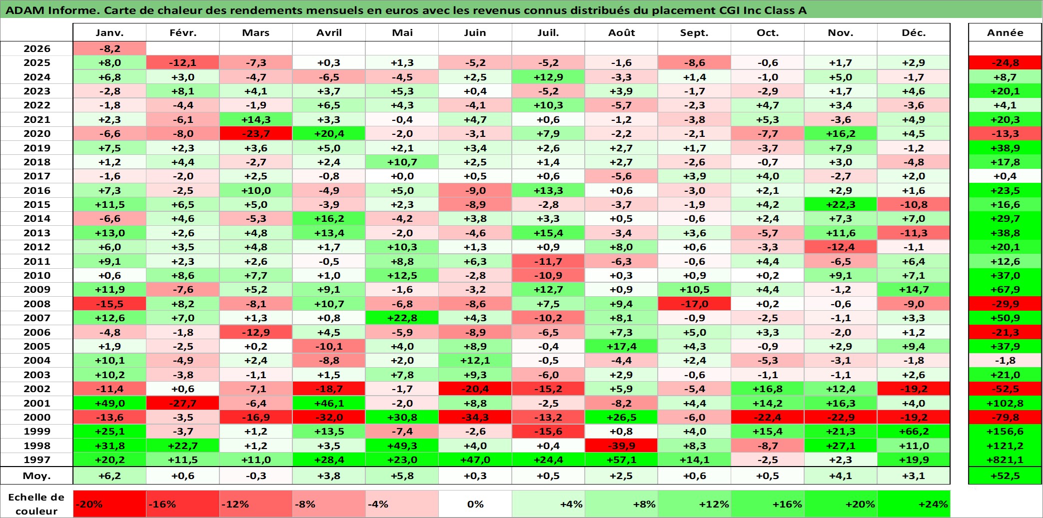 Dernière perfo 1 an en %