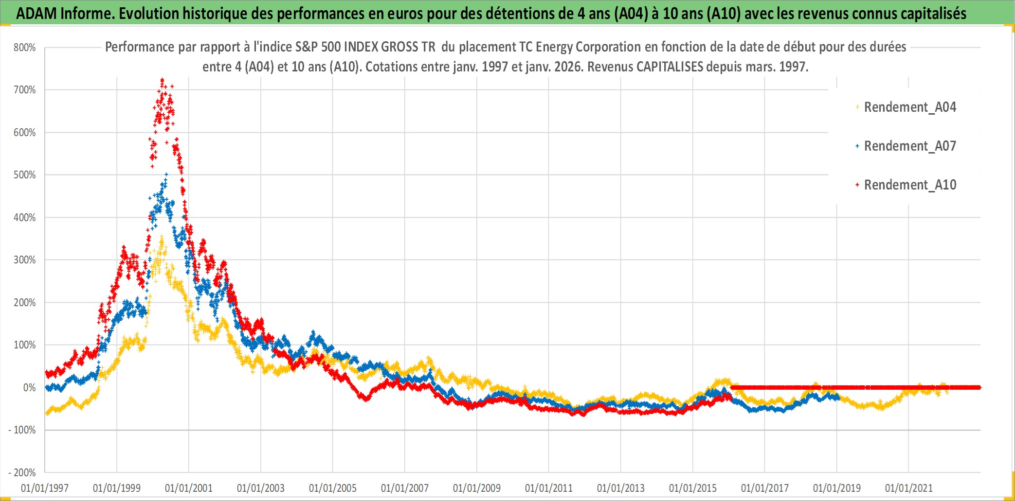 Site dédié aux investisseursPage dédiée sur site financeAnalyse des valorisations hebdomadaires de l'action TC Energy Corporation. Cet actif est cote en CAD. Les valorisations sont en contrevaleur EURO et couvrent les semaines 1997W01 a 2026W05. Les revenus de cet actif financier sont pris en compte depuis la semaine 1997W13. La note globale ESG de cet actif est estimee a 9.0 (apres rebasage entre 0 et 20).