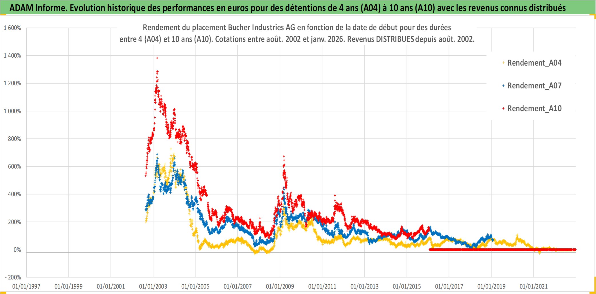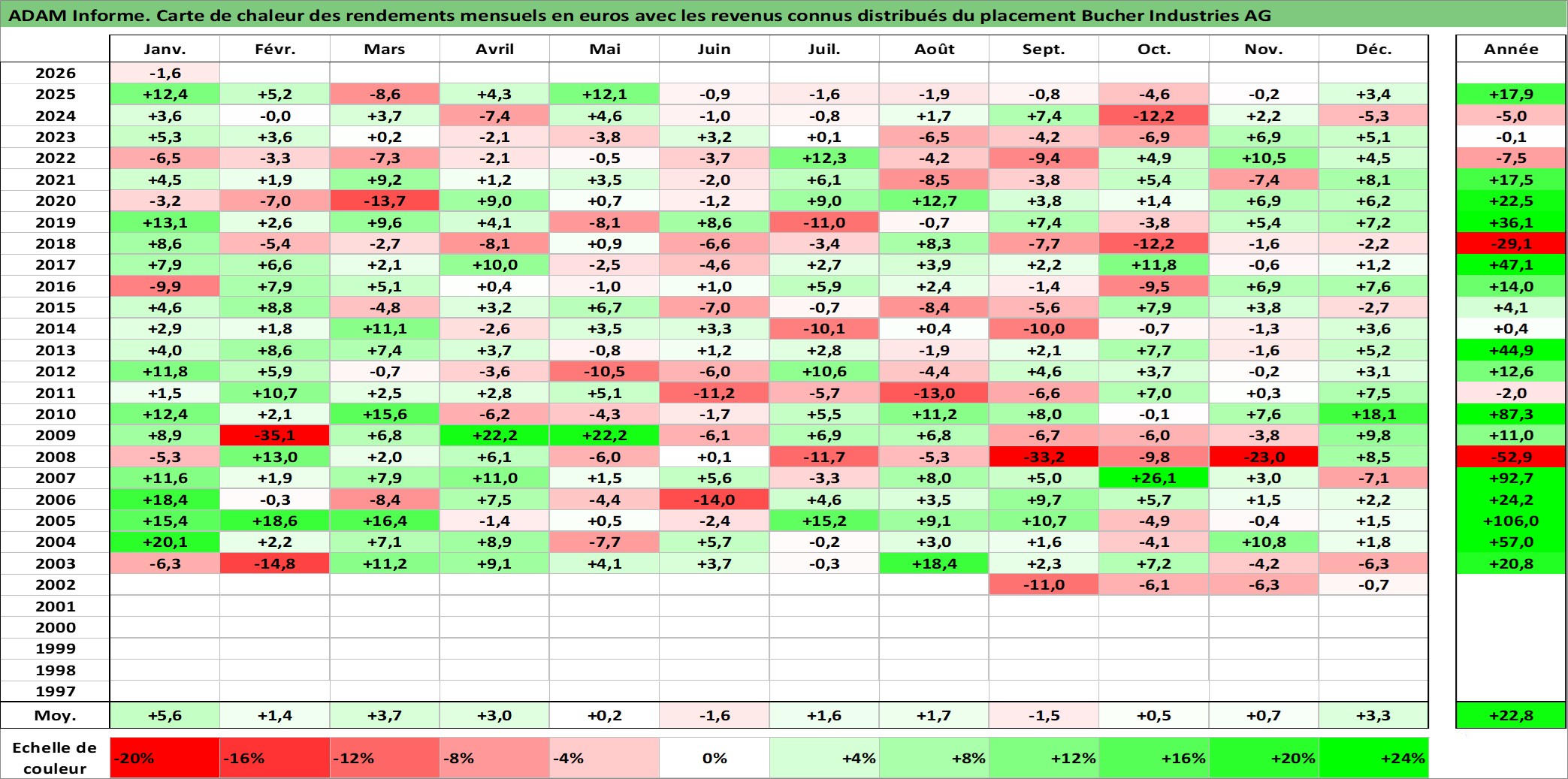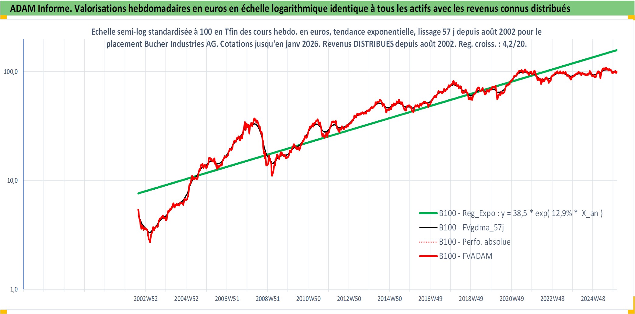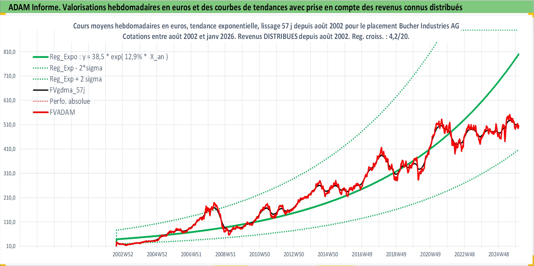 Site dédié aux investisseursPage dédiée sur site financeAnalyse des valorisations hebdomadaires de l'action Bucher Industries AG. Cet actif est cote en CHF. Les valorisations sont en contrevaleur EURO et couvrent les semaines 2002W33 a 2026W05. Les revenus de cet actif financier sont pris en compte depuis la semaine 2002W33. La note ESG de cet actif n'est pas connue.