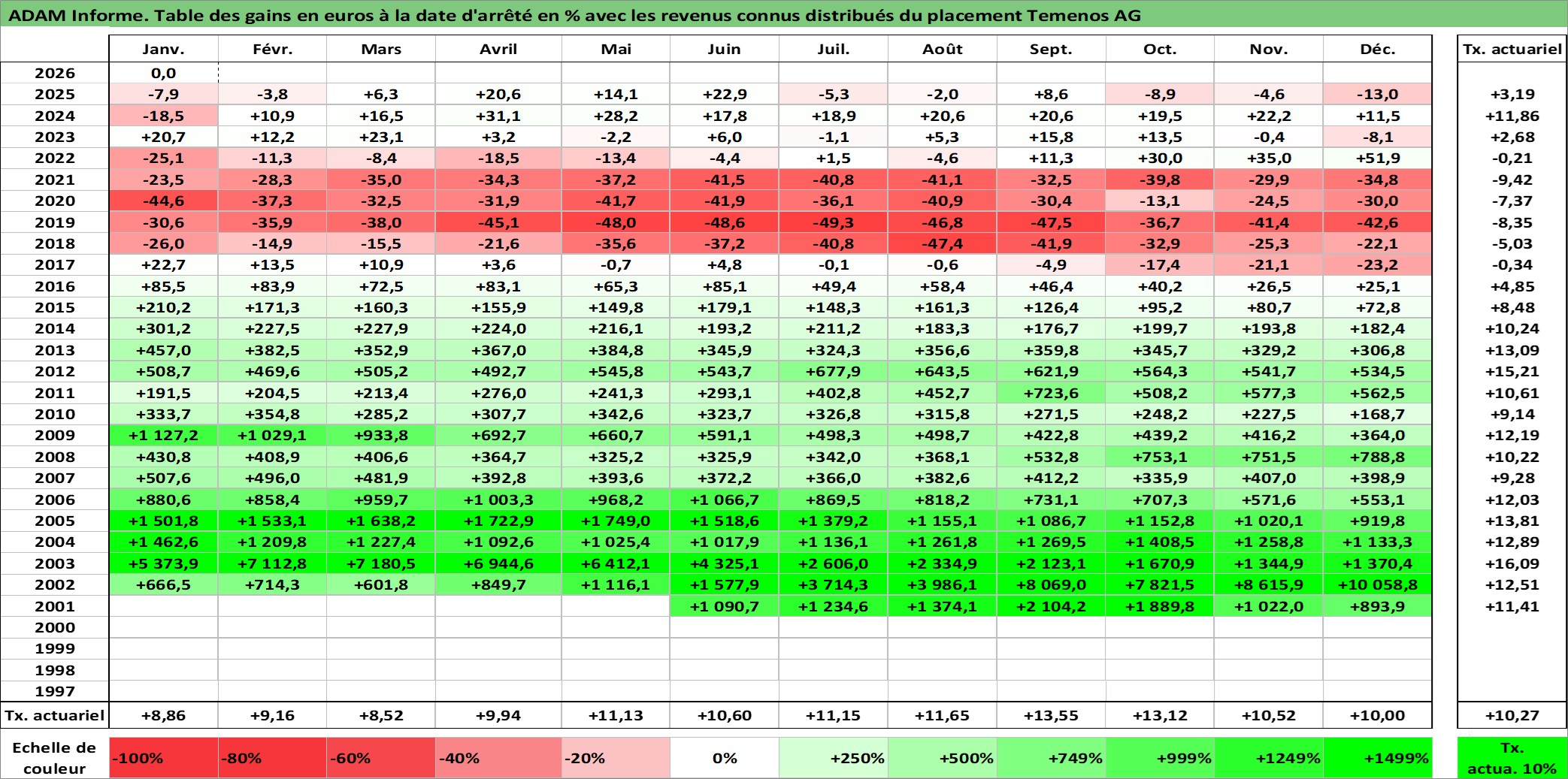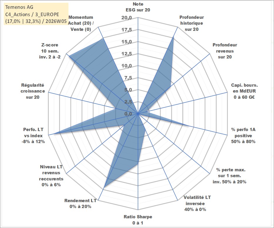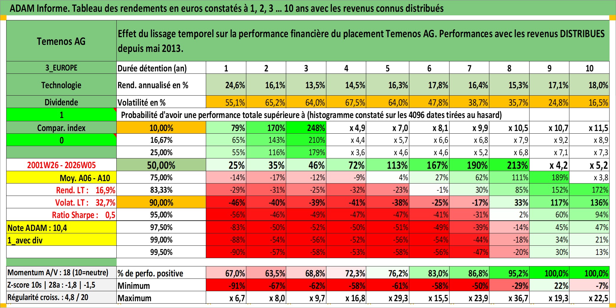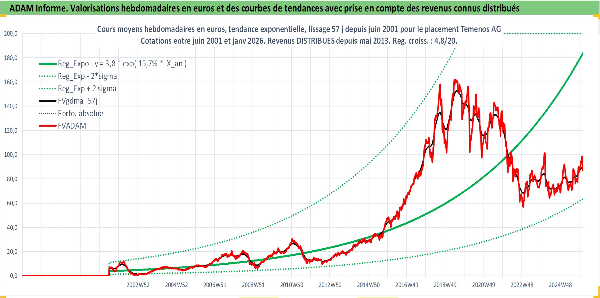 Site dédié aux investisseursPage dédiée sur site financeAnalyse des valorisations hebdomadaires de l'action Temenos AG. Cet actif est cote en CHF. Les valorisations sont en contrevaleur EURO et couvrent les semaines 2001W26 a 2026W05. Les revenus de cet actif financier sont pris en compte depuis la semaine 2013W22. La note ESG de cet actif n'est pas connue.
