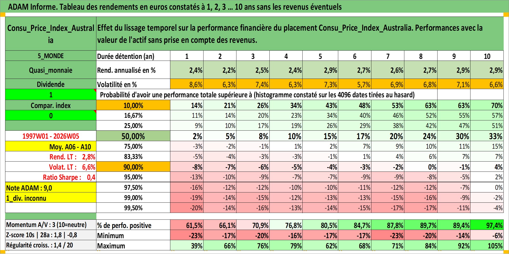Site dédié aux investisseursPage dédiée sur site financeAnalyse des valorisations hebdomadaires de l'action Consu_Price_Index_Australia. Cet actif est cote en AUD. Les valorisations sont en contrevaleur EURO et couvrent les semaines 1997W01 a 2026W05. Les revenus de cet actif financier ne sont pas connus car non existants ou non disponibles sur le site Yahoo Finance. La note ESG de cet actif n'est pas connue.