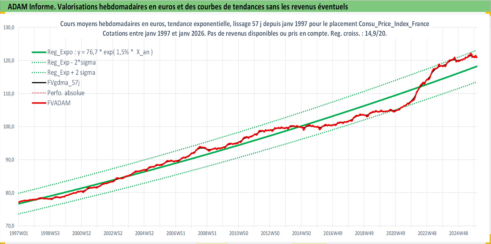 Site dédié aux investisseursPage dédiée sur site financeAnalyse des valorisations hebdomadaires de l'action Consu_Price_Index_France. Cet actif est cote en EUR. Les valorisations couvrent les semaines 1997W01 a 2026W05. Les revenus de cet actif financier ne sont pas connus car non existants ou non disponibles sur le site Yahoo Finance. La note ESG de cet actif n'est pas connue.