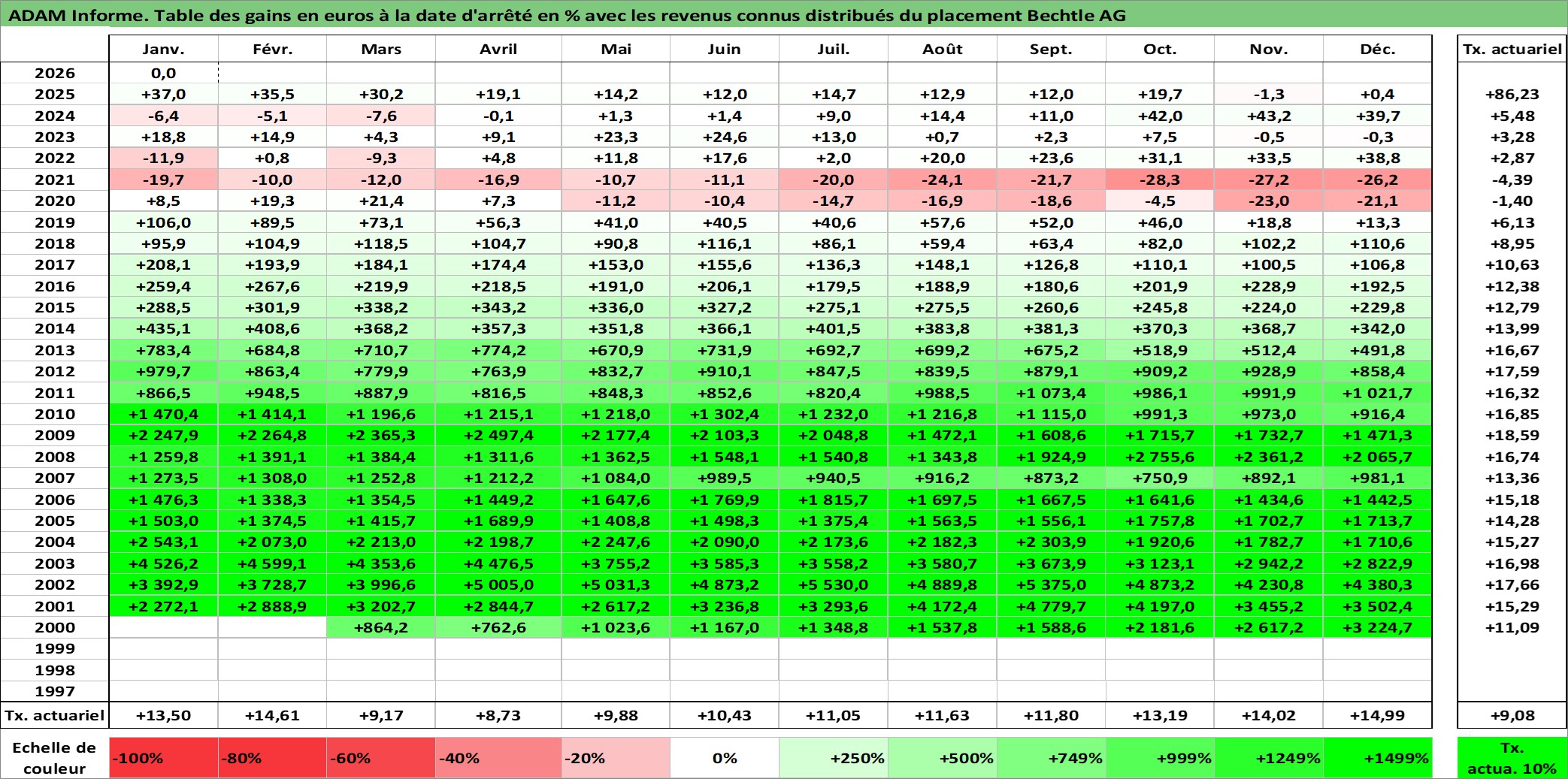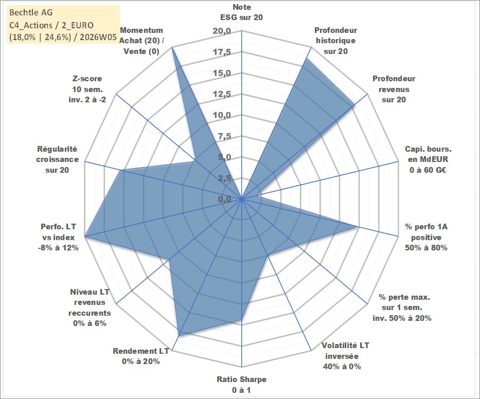 Site dédié aux investisseursPage dédiée sur site financeAnalyse des valorisations hebdomadaires de l'action Bechtle AG. Cet actif est cote en EUR. Les valorisations couvrent les semaines 2000W13 a 2026W05. Les revenus de cet actif financier sont pris en compte depuis la semaine 2001W23. La note ESG de cet actif n'est pas connue.
