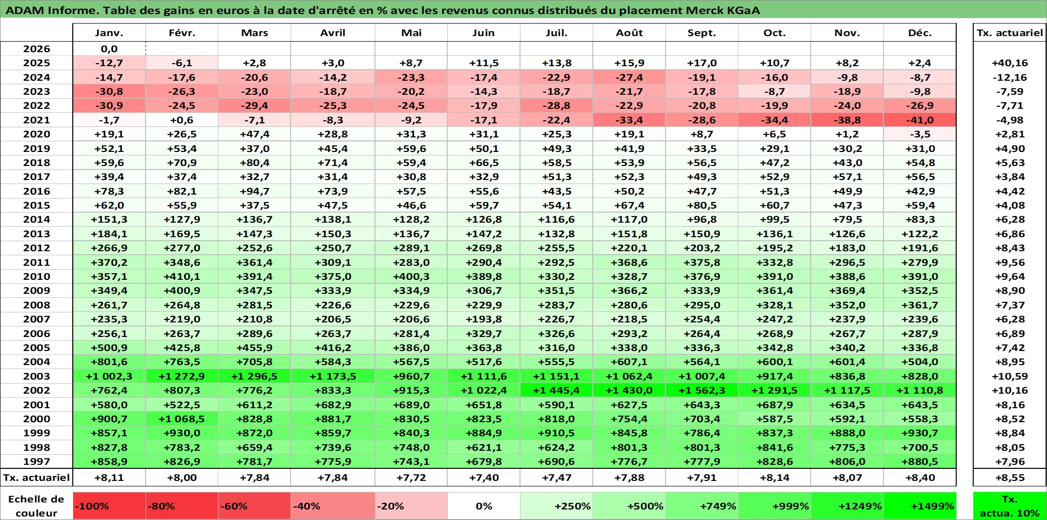 Dernière perfo 1 an en %