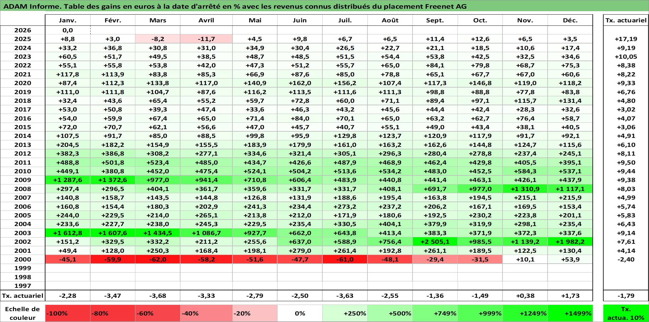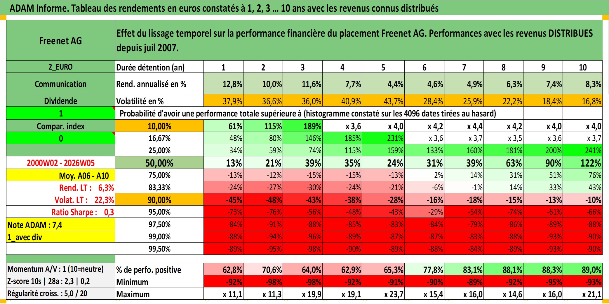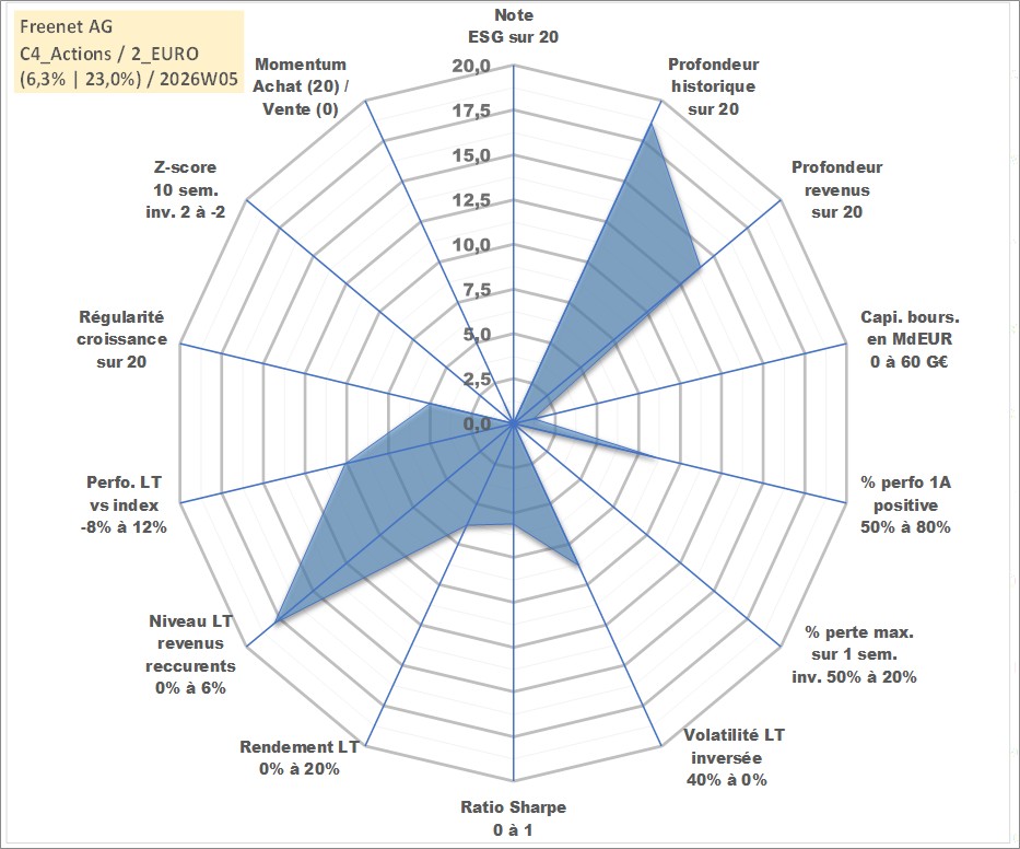 Site dédié aux investisseursPage dédiée sur site financeAnalyse des valorisations hebdomadaires de l'action Freenet AG. Cet actif est cote en EUR. Les valorisations couvrent les semaines 2000W02 a 2026W05. Les revenus de cet actif financier sont pris en compte depuis la semaine 2007W30. La note ESG de cet actif n'est pas connue.